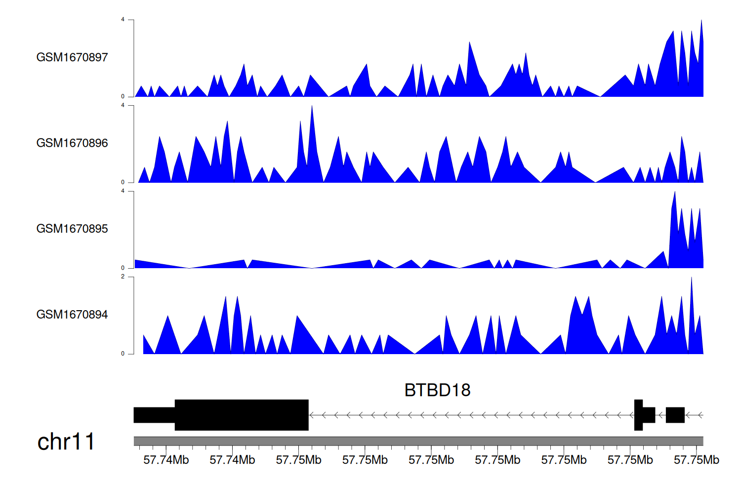 > Dataset: GSE68402 - BTBD18 peak across samples