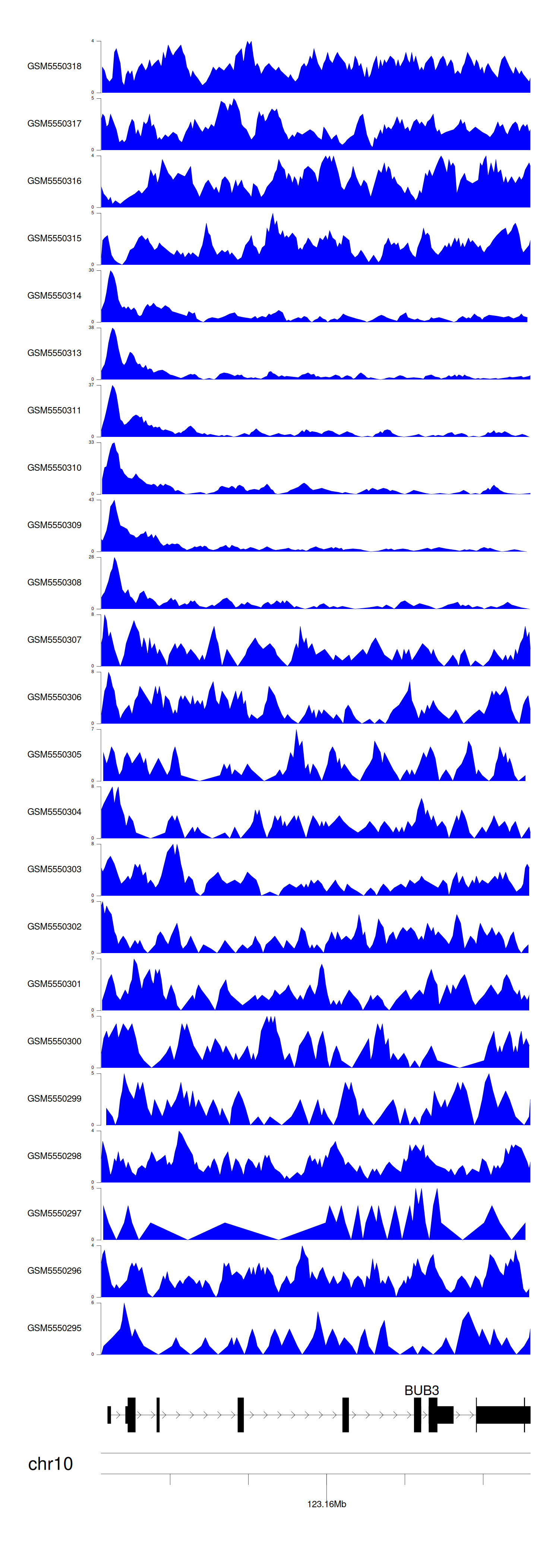 > Dataset: GSE183048 - BUB3 peak across samples