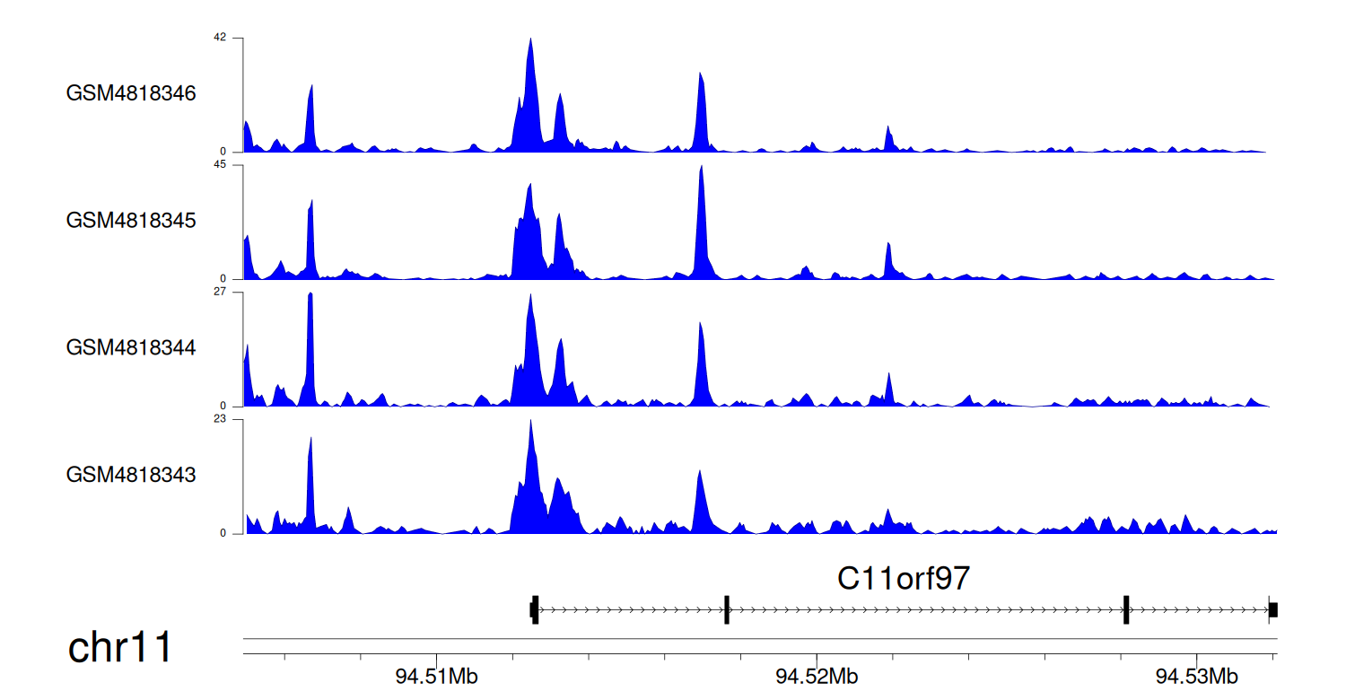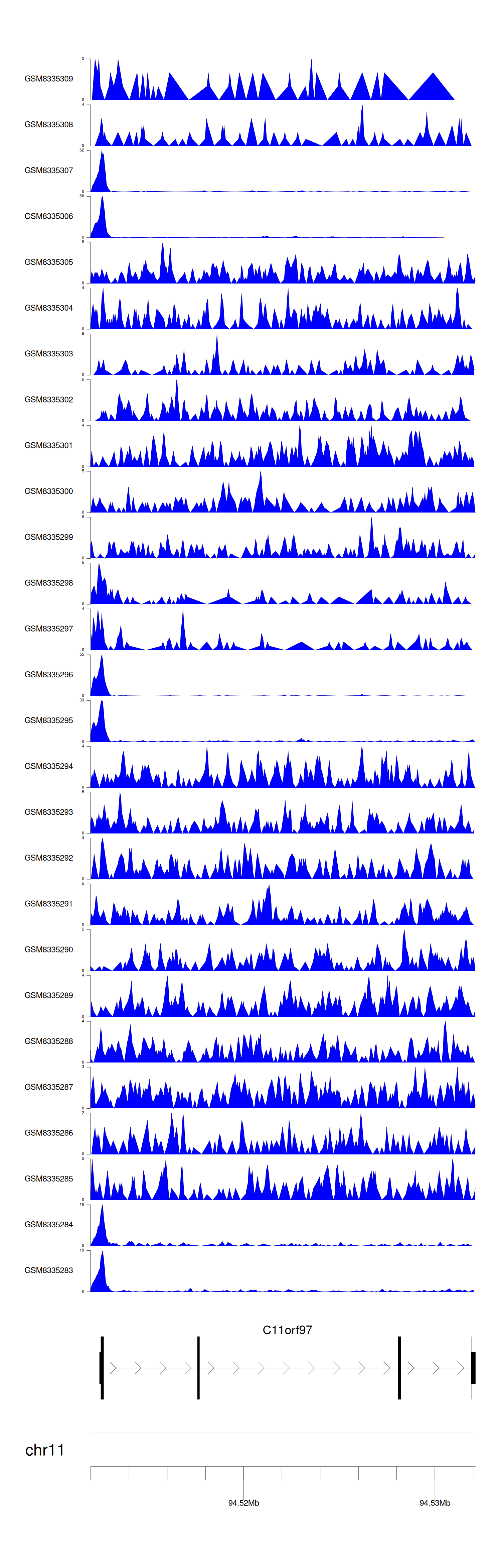 > Dataset: GSE270130 - C11orf97 peak across samples