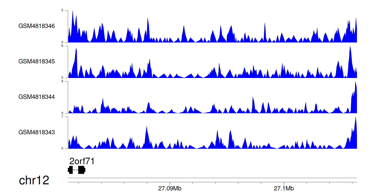 > Dataset: GSE131257 - C12orf71 peak across samples