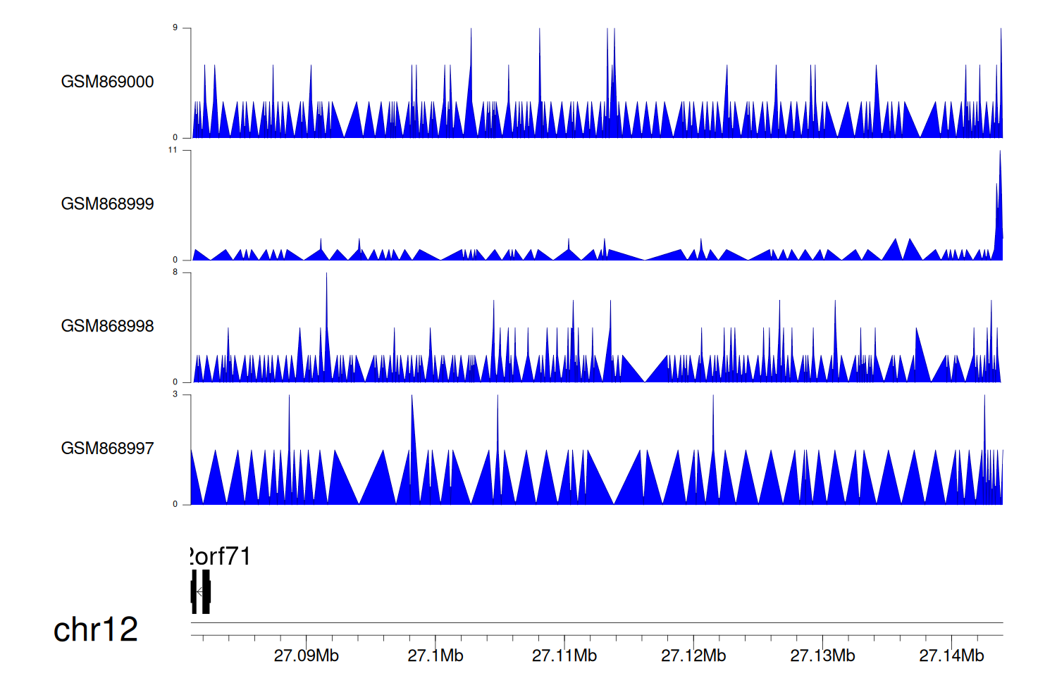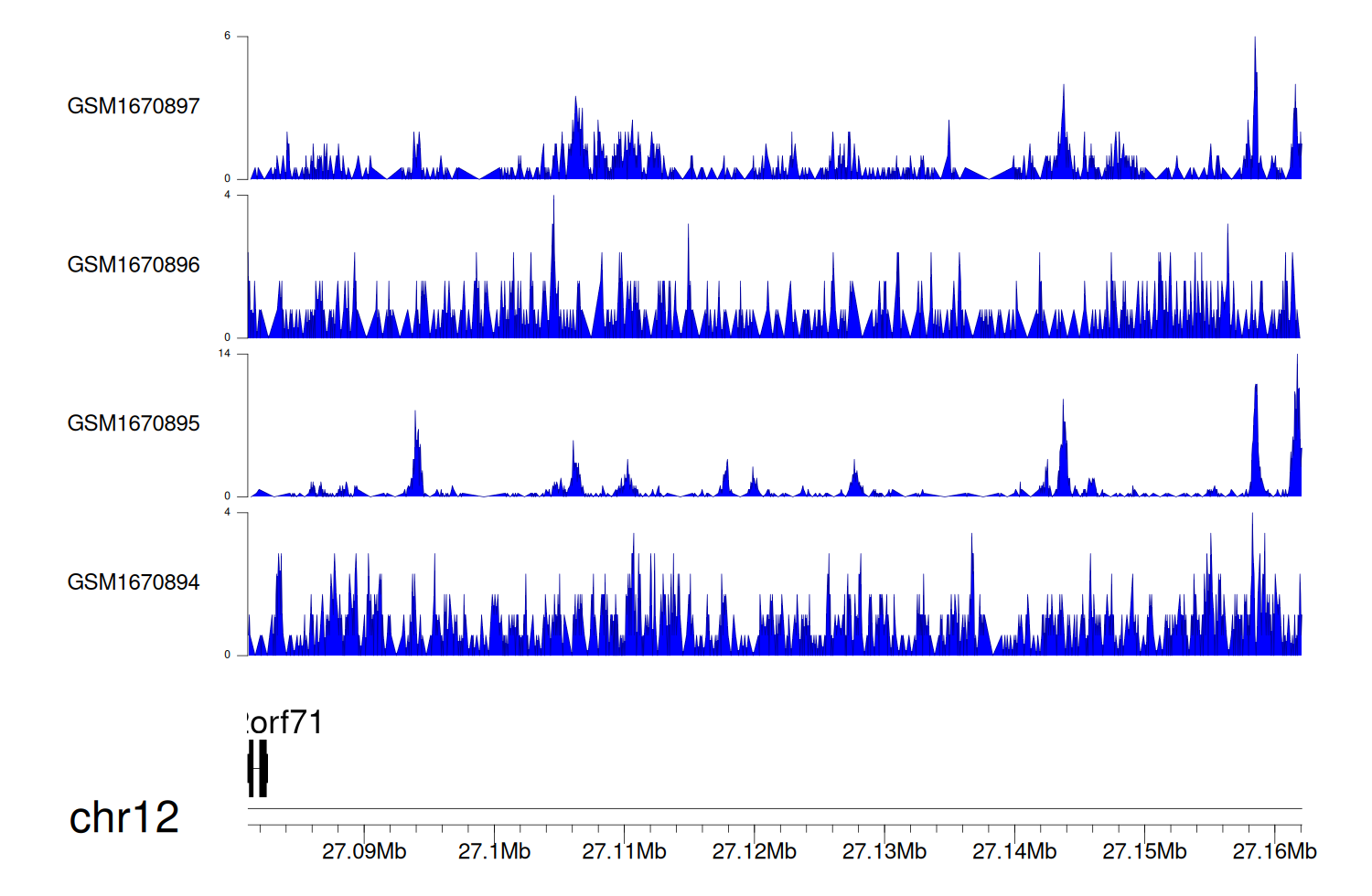 > Dataset: GSE68402 - C12orf71 peak across samples