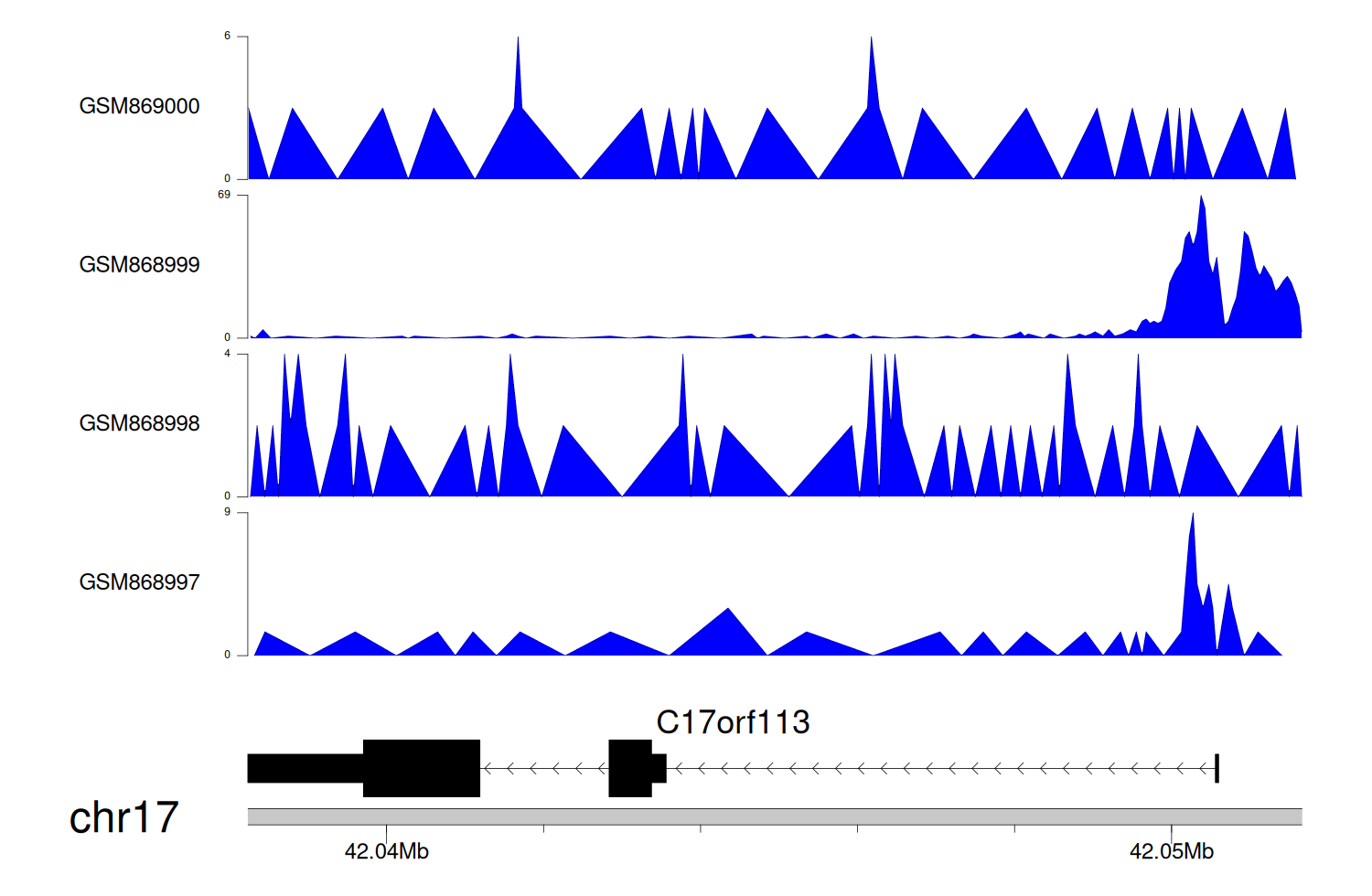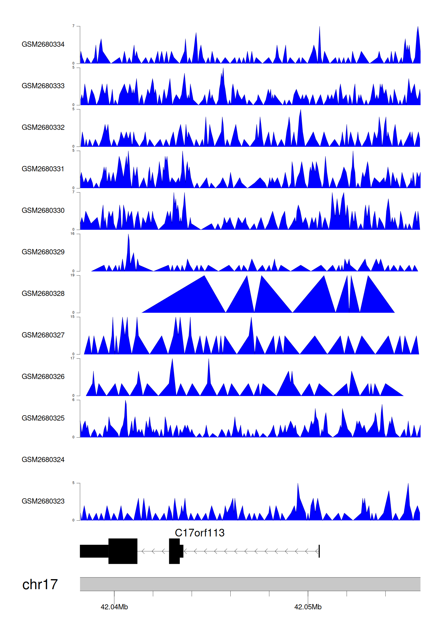 > Dataset: GSE68402 - C17orf113 peak across samples