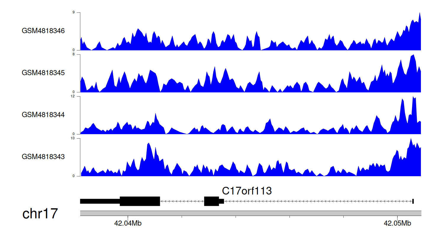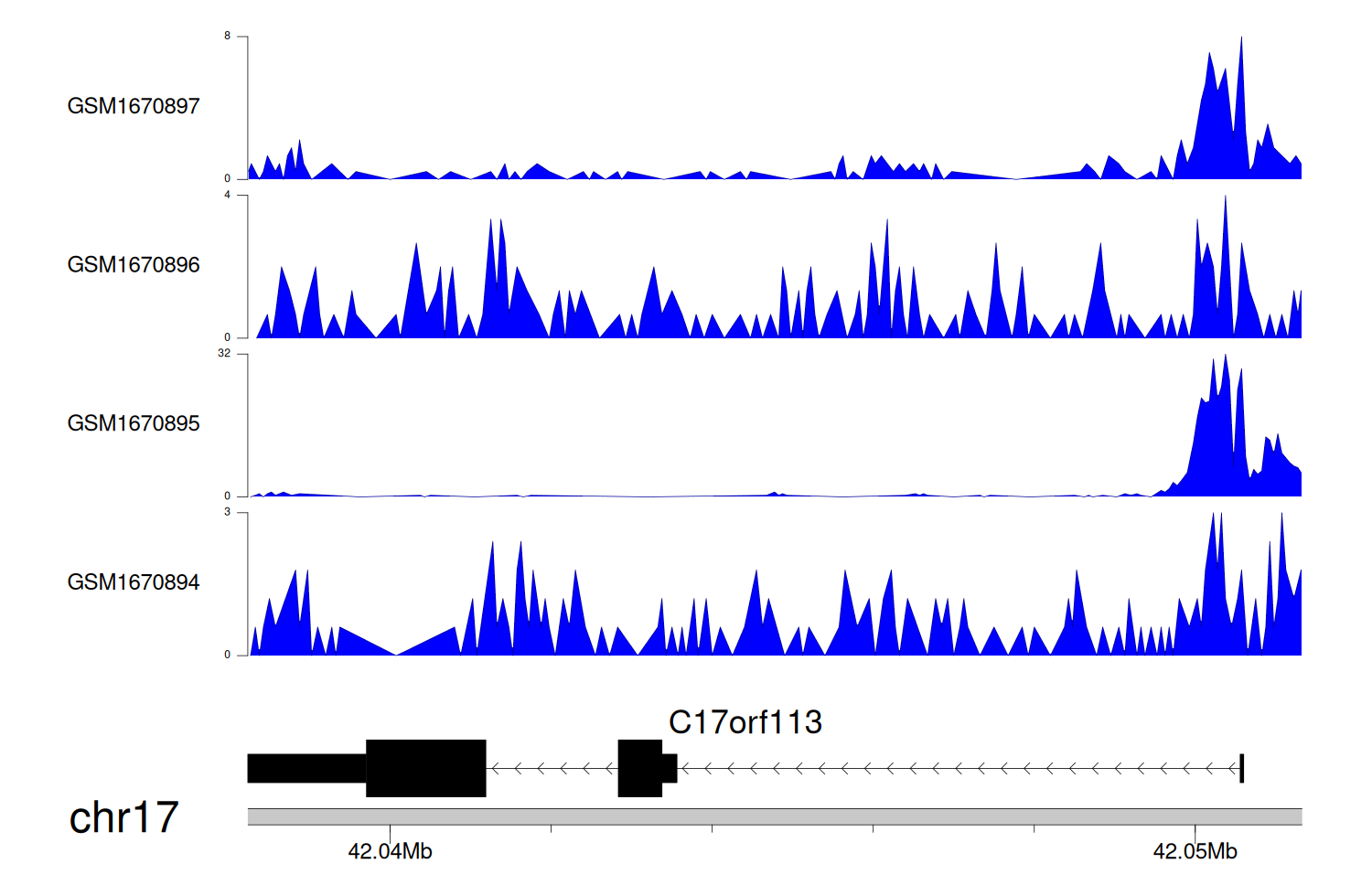> Dataset: GSE131257 - C17orf113 peak across samples