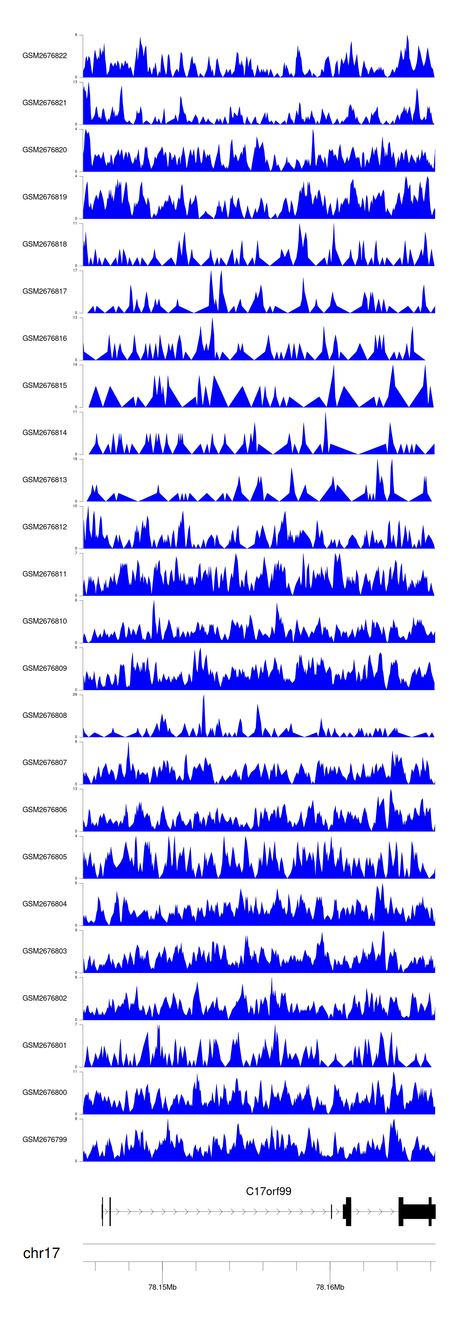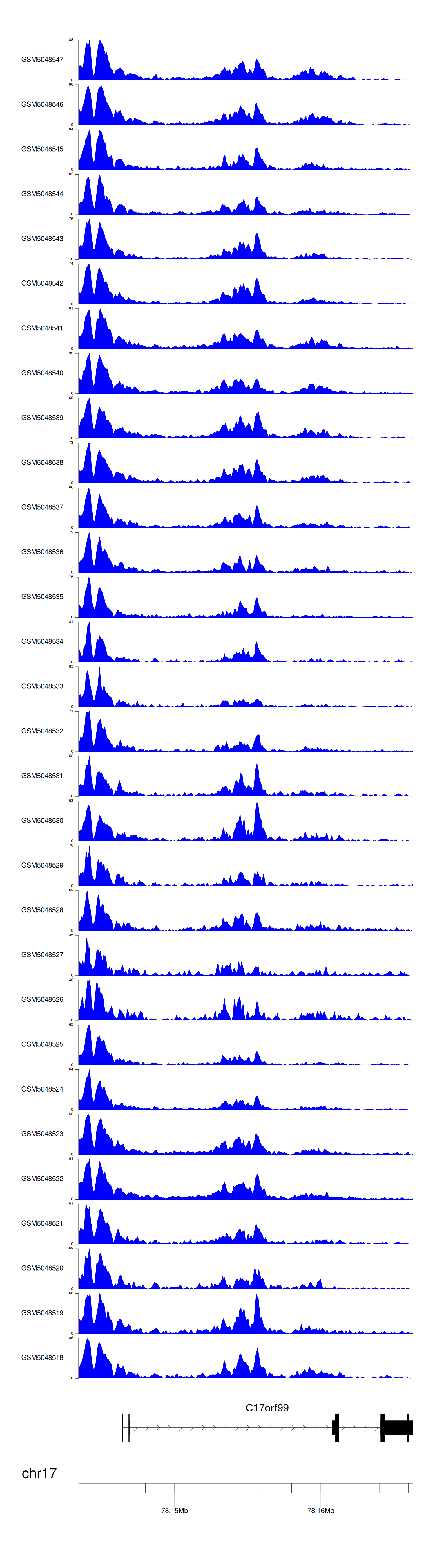 > Dataset: GSE165703 - C17orf99 peak across samples