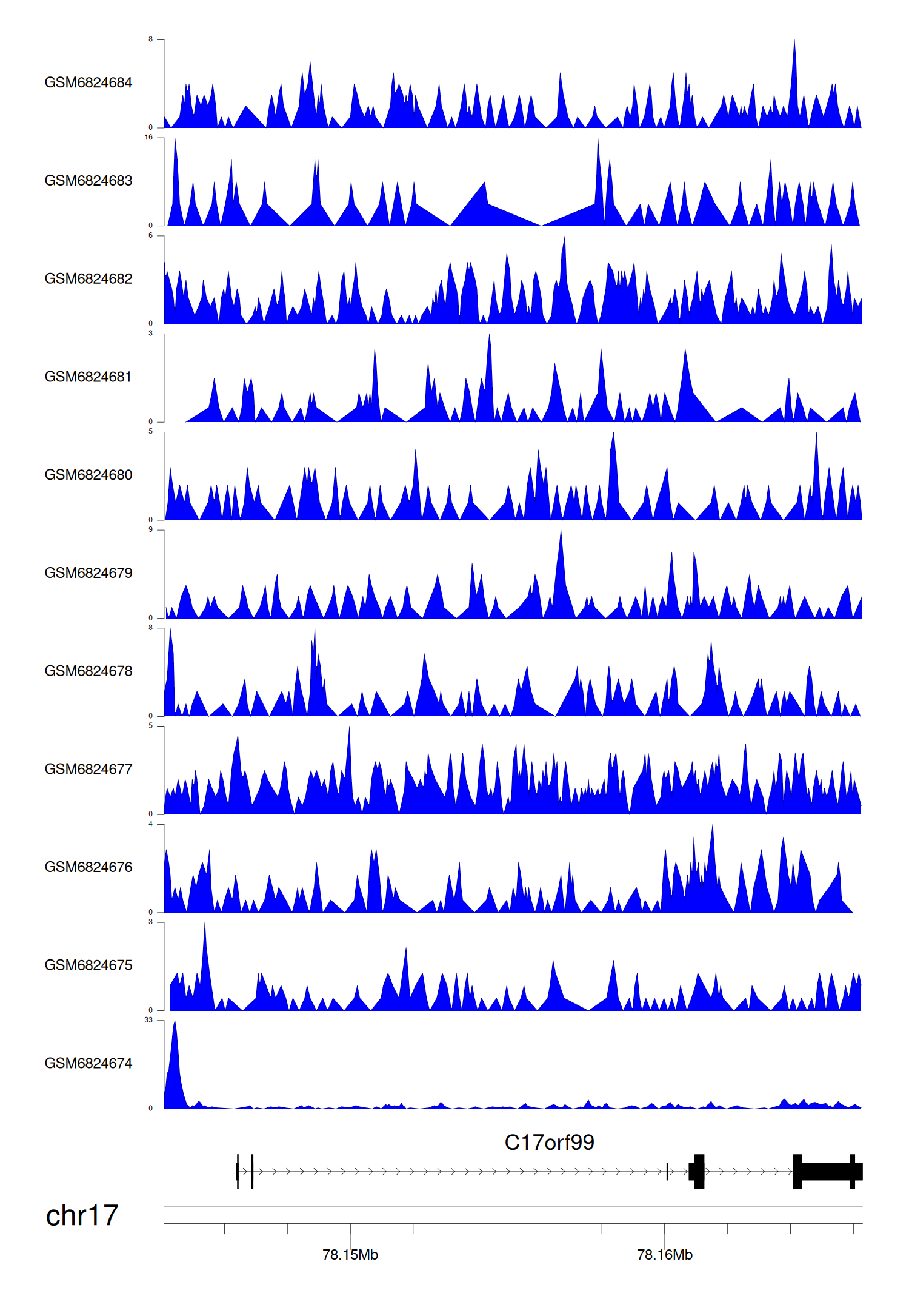 > Dataset: GSE221688 - C17orf99 peak across samples