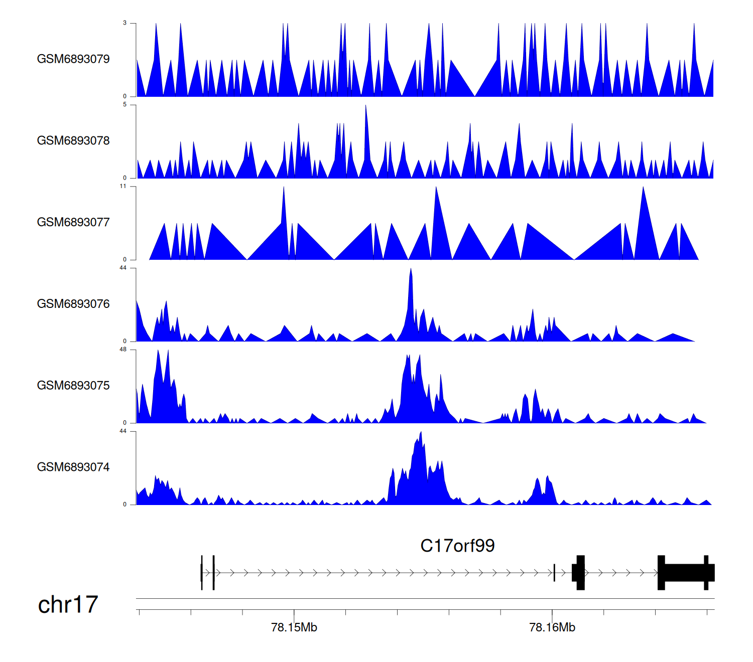 > Dataset: GSE211651 - C17orf99 peak across samples