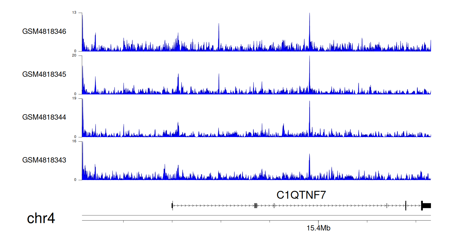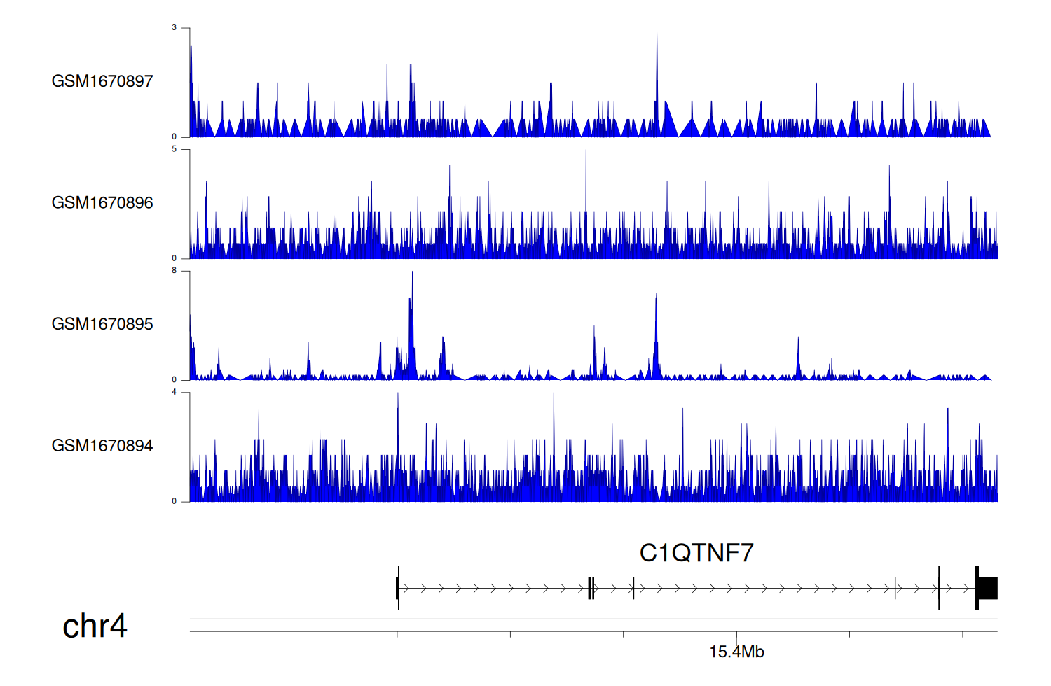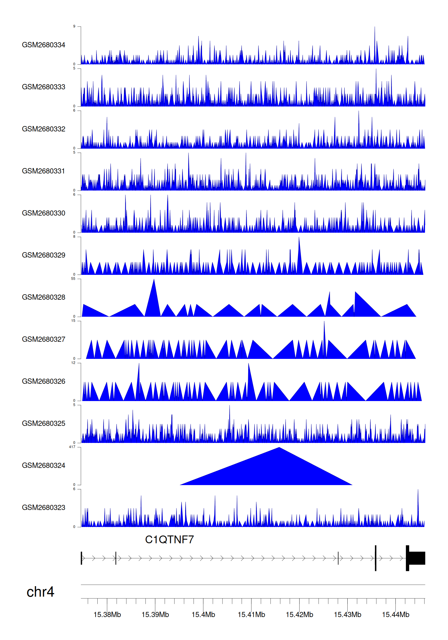 > Dataset: GSE68402 - C1QTNF7 peak across samples
