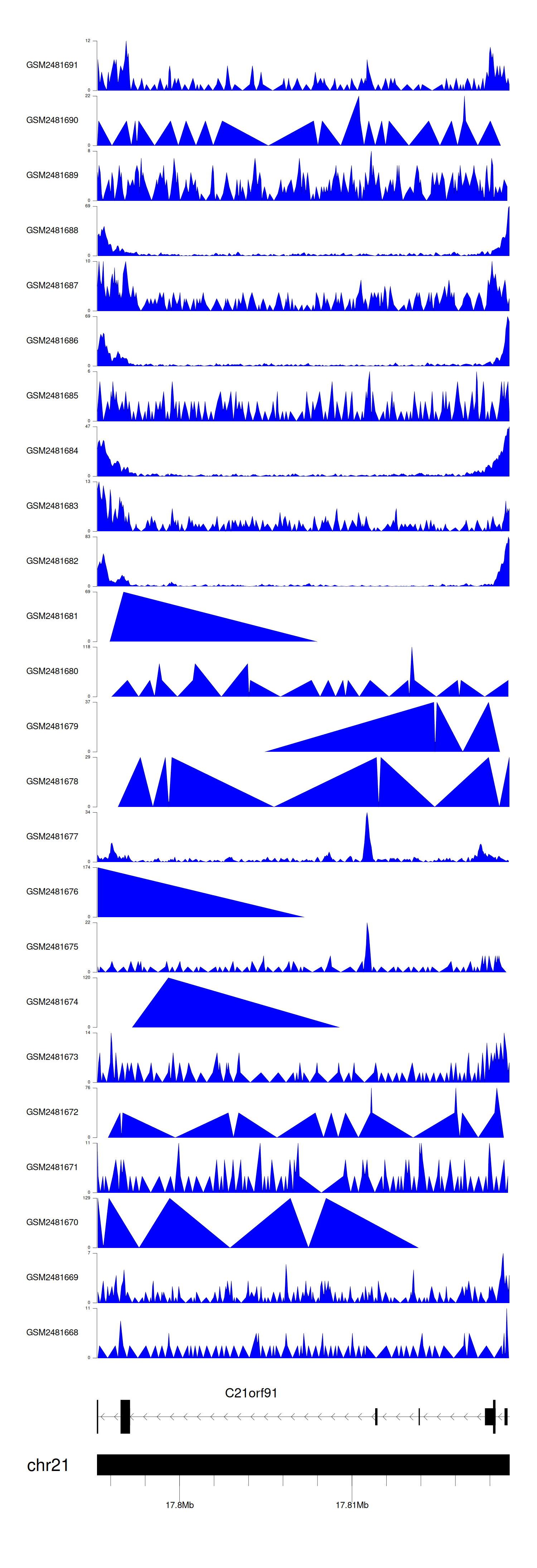> Dataset: GSE94732 - C21orf91 peak across samples