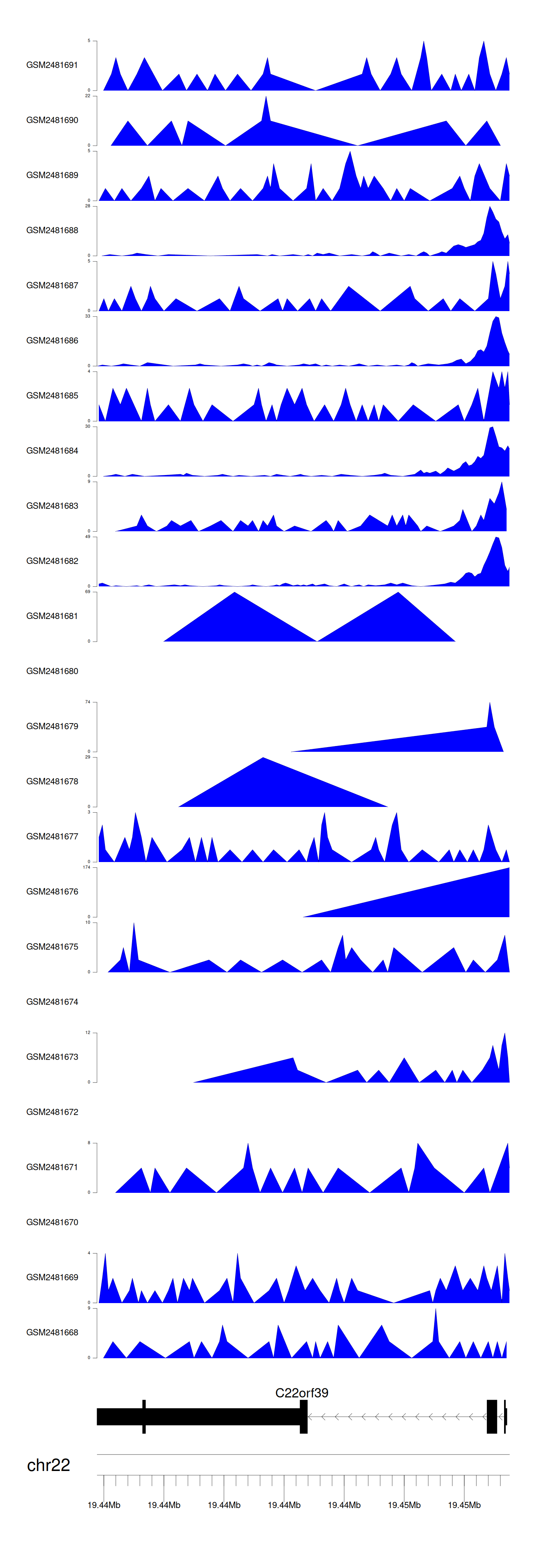 > Dataset: GSE94732 - C22orf39 peak across samples
