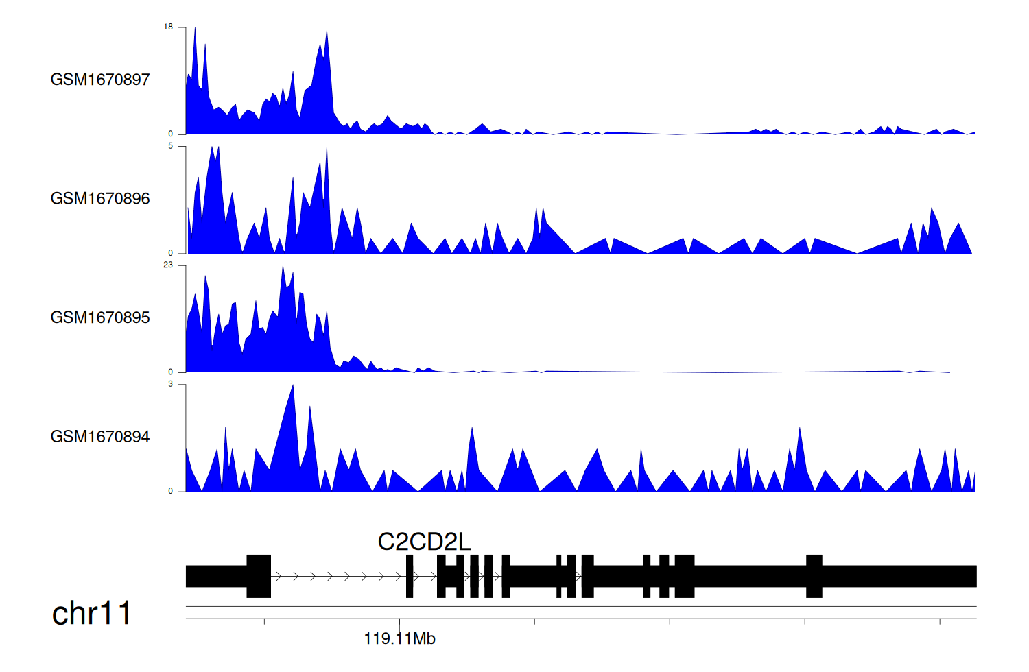 > Dataset: GSE68402 - C2CD2L peak across samples