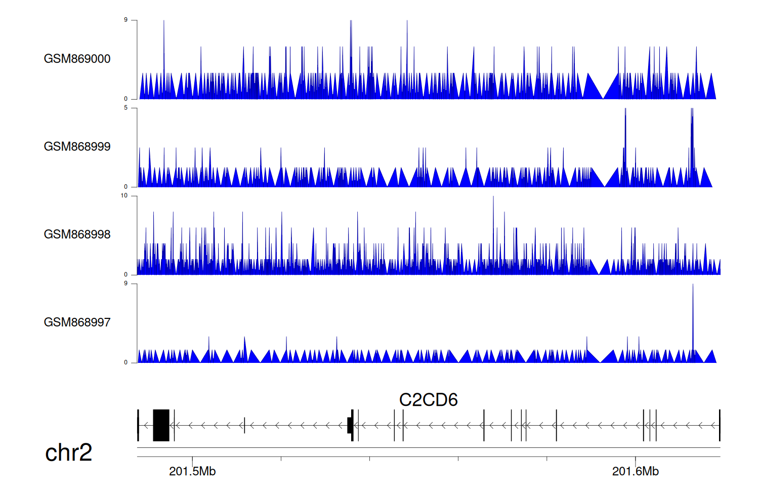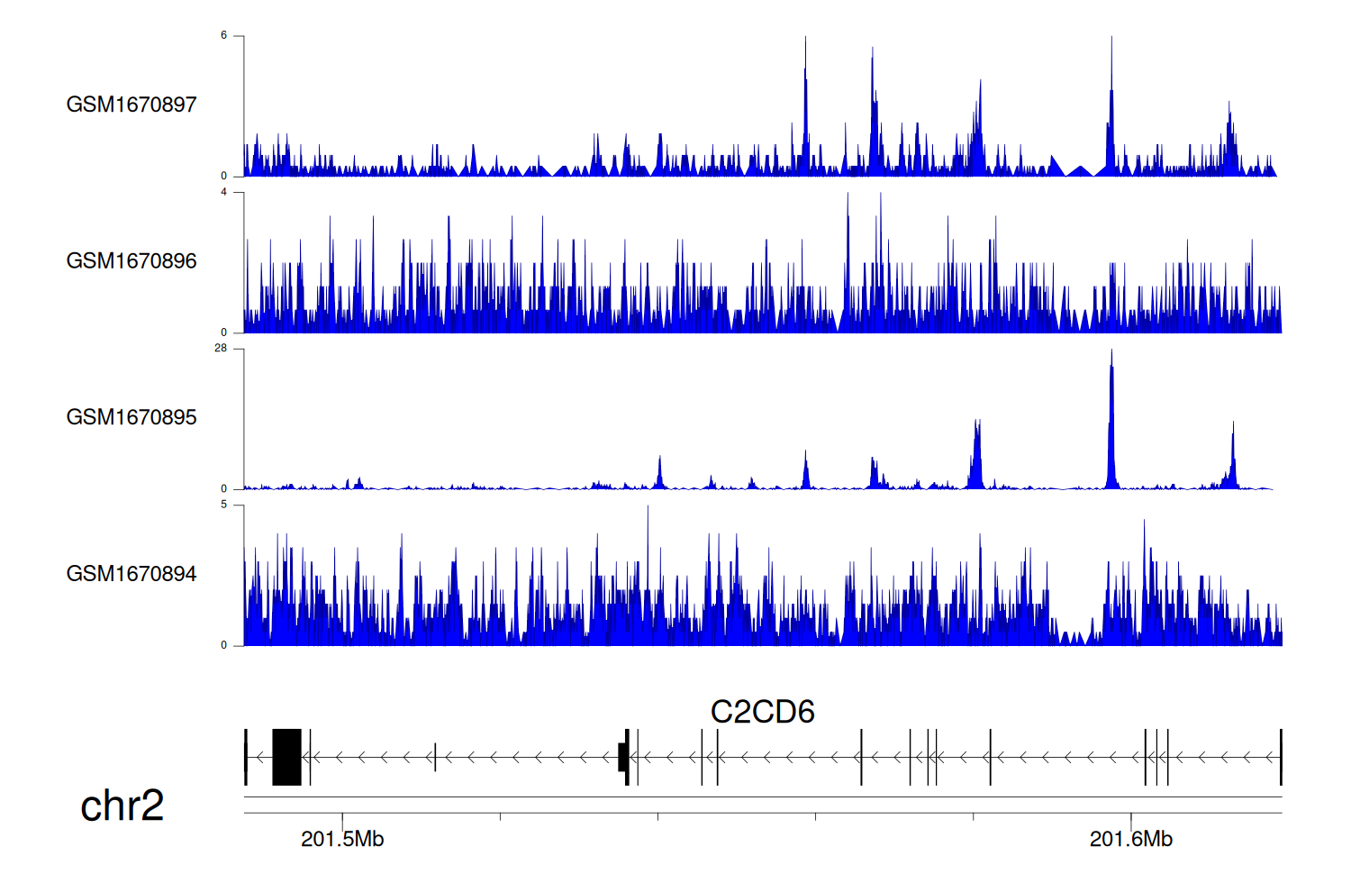 > Dataset: GSE68402 - C2CD6 peak across samples