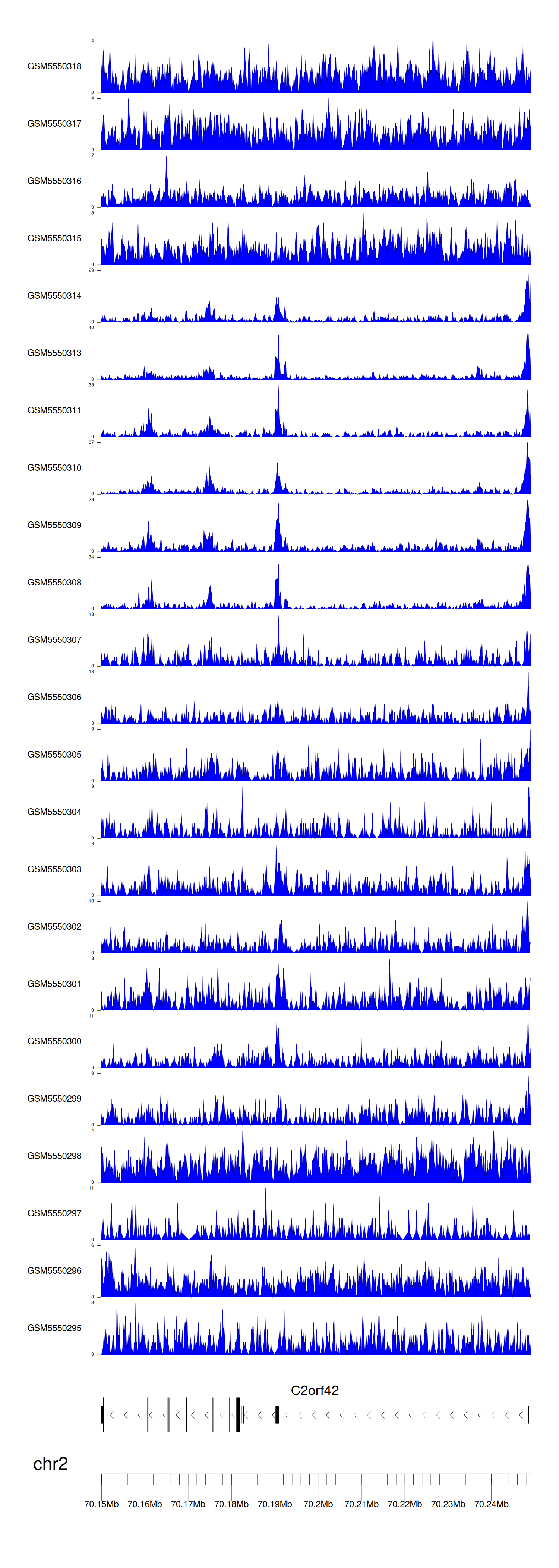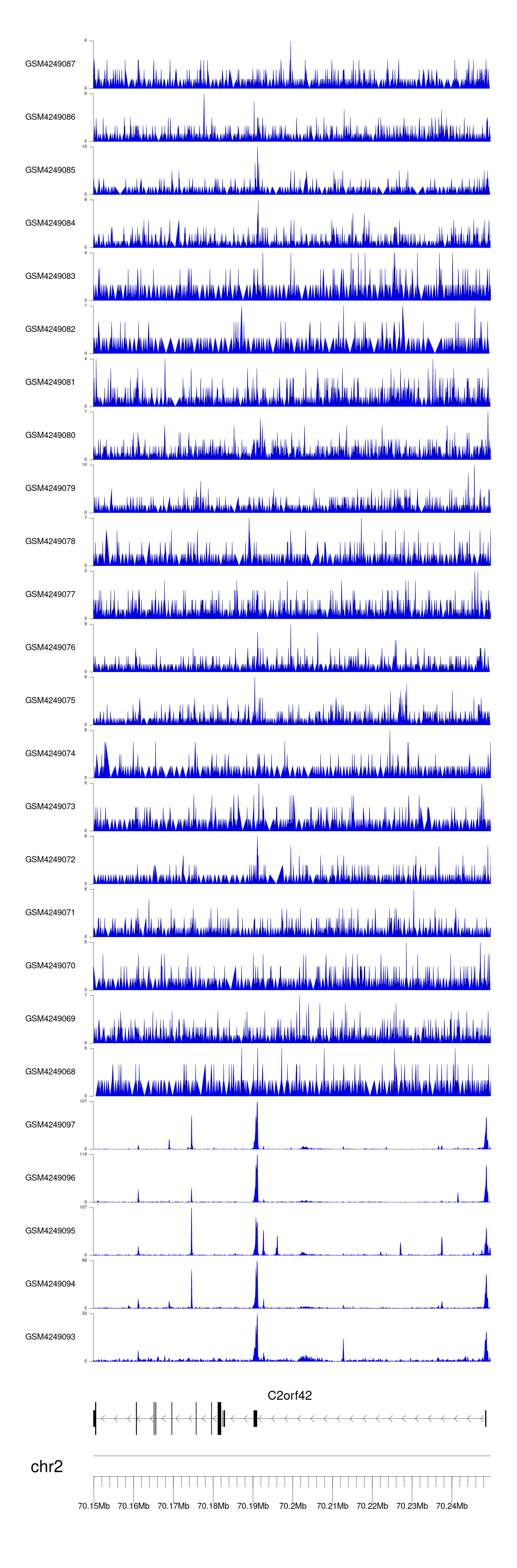 > Dataset: GSE143026 - C2orf42 peak across samples