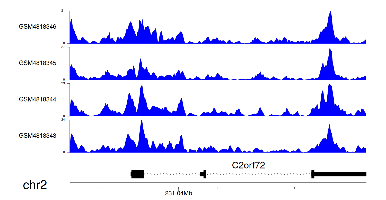 > Dataset: GSE131257 - C2orf72 peak across samples