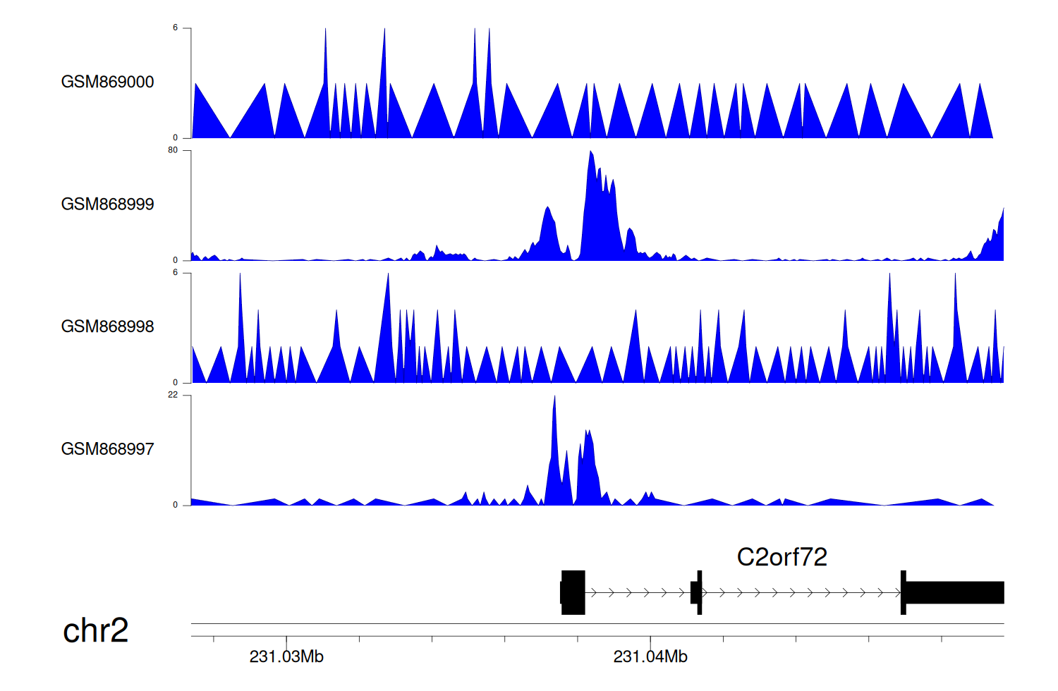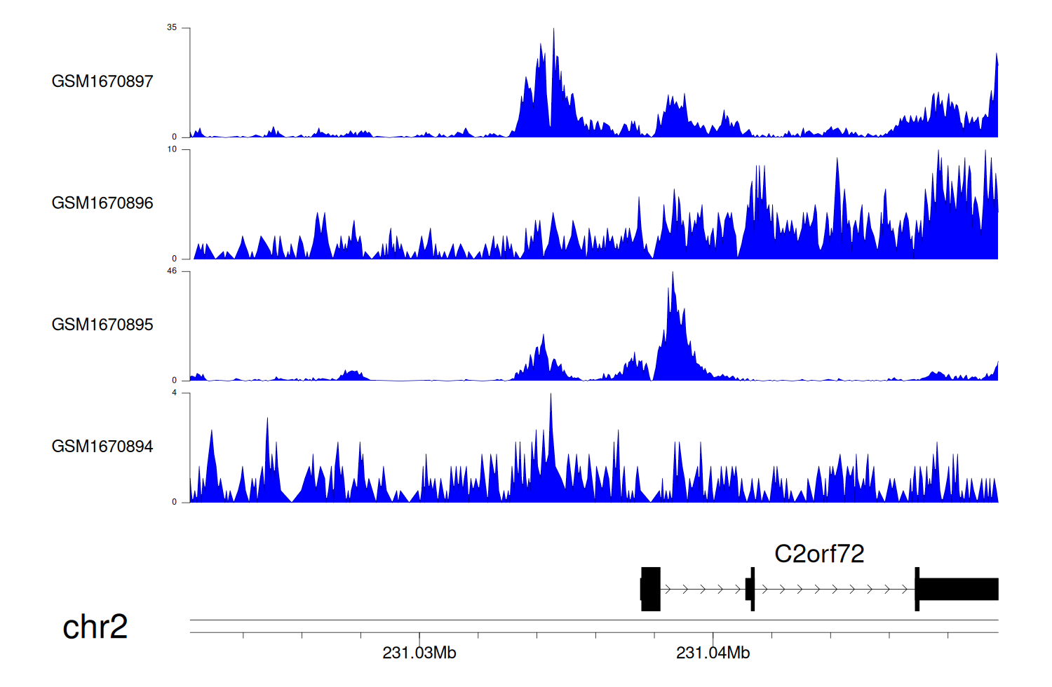 > Dataset: GSE68402 - C2orf72 peak across samples