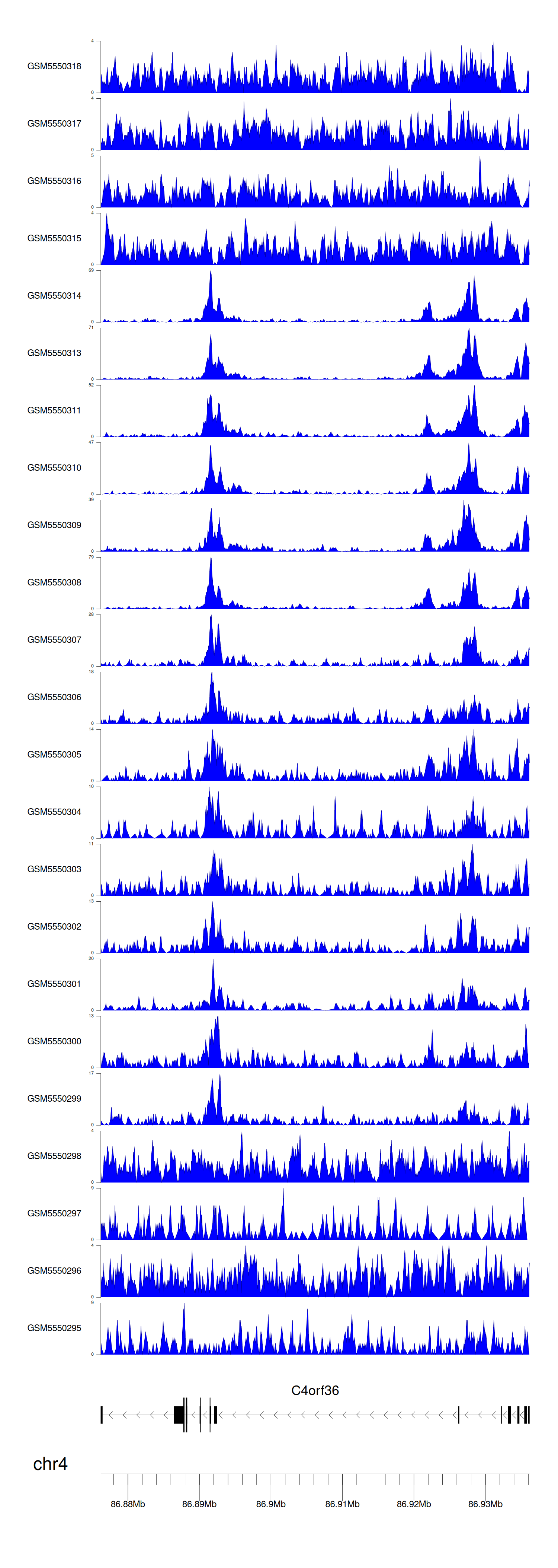> Dataset: GSE143026 - C4orf36 peak across samples