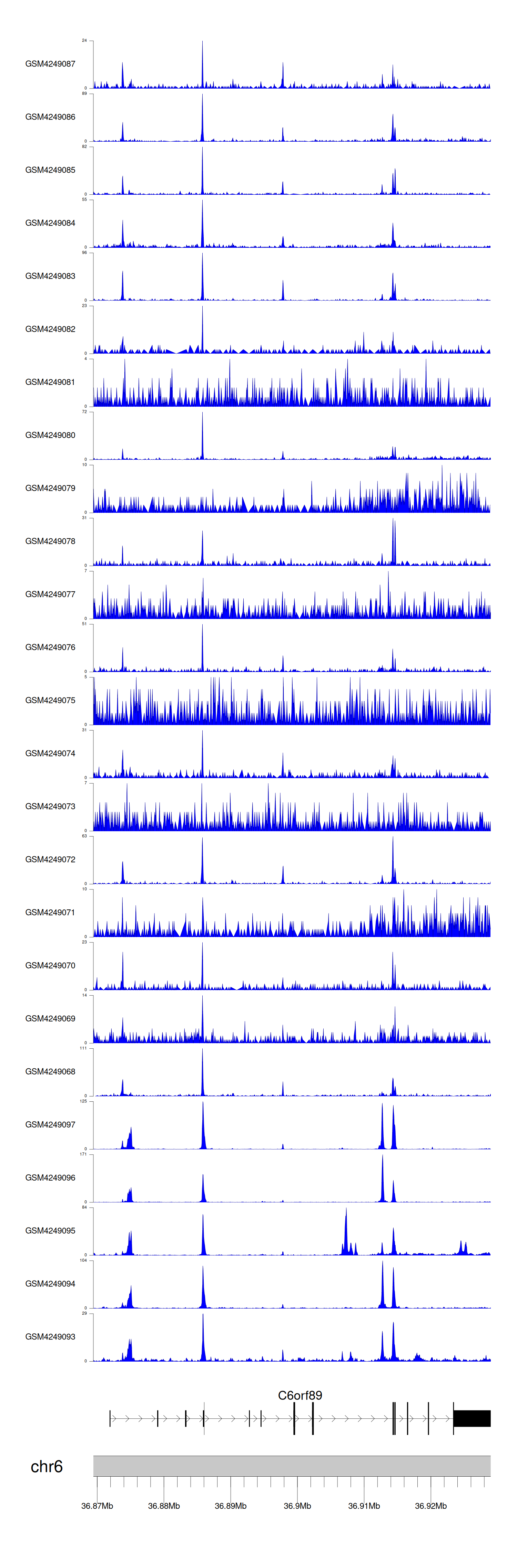 > Dataset: GSE143026 - C6orf89 peak across samples