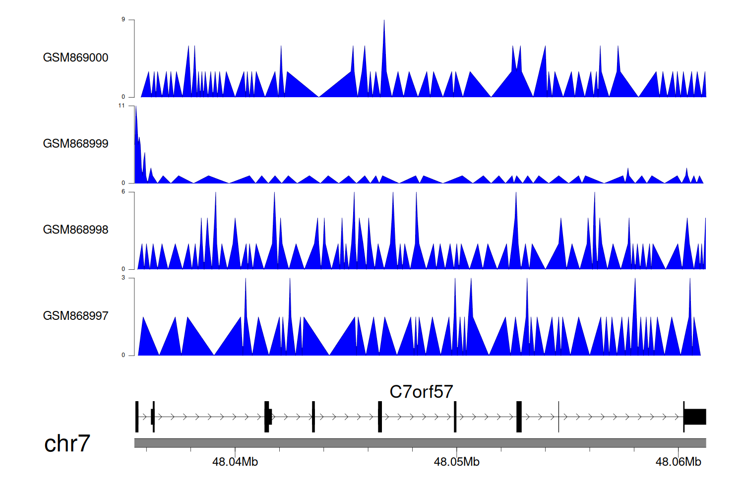 > Dataset: GSE100400 - C7orf57 peak across samples