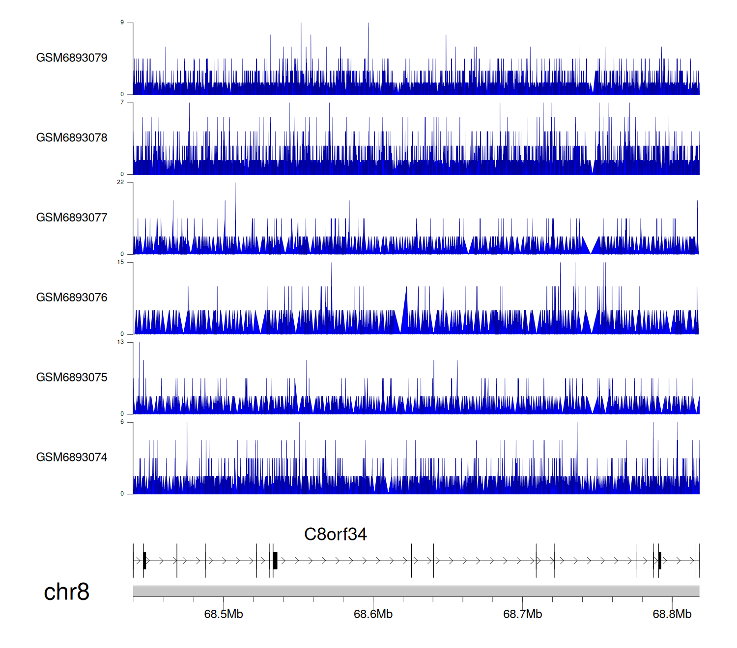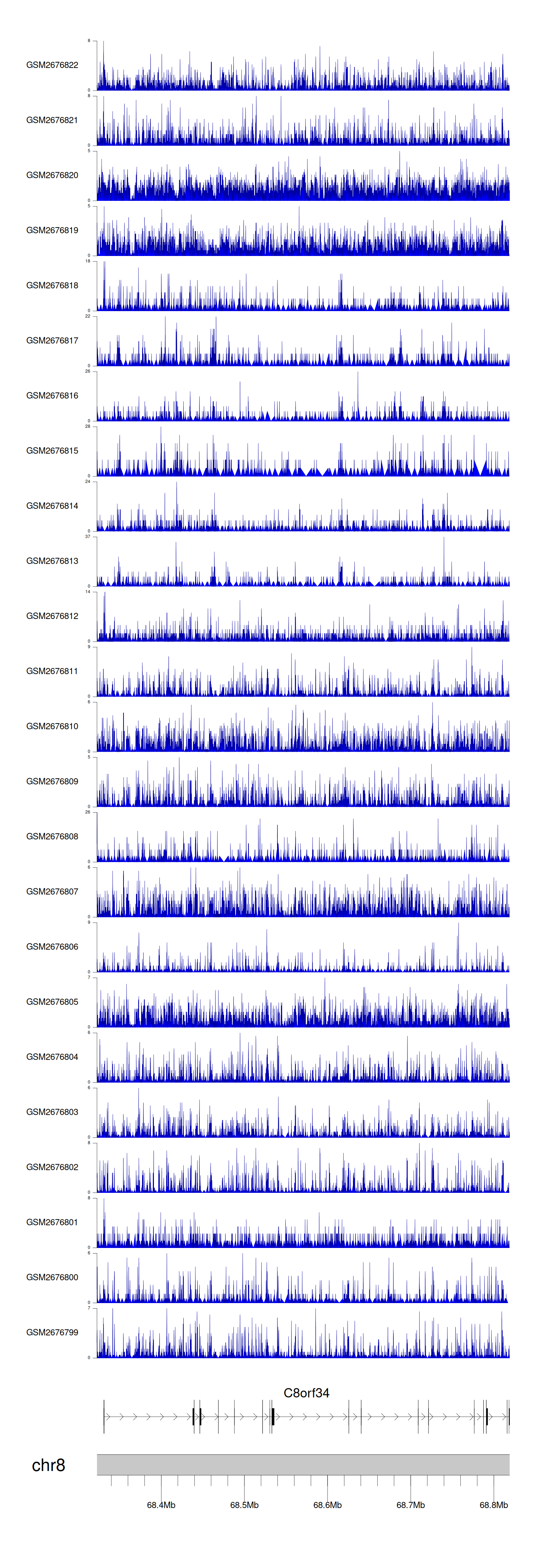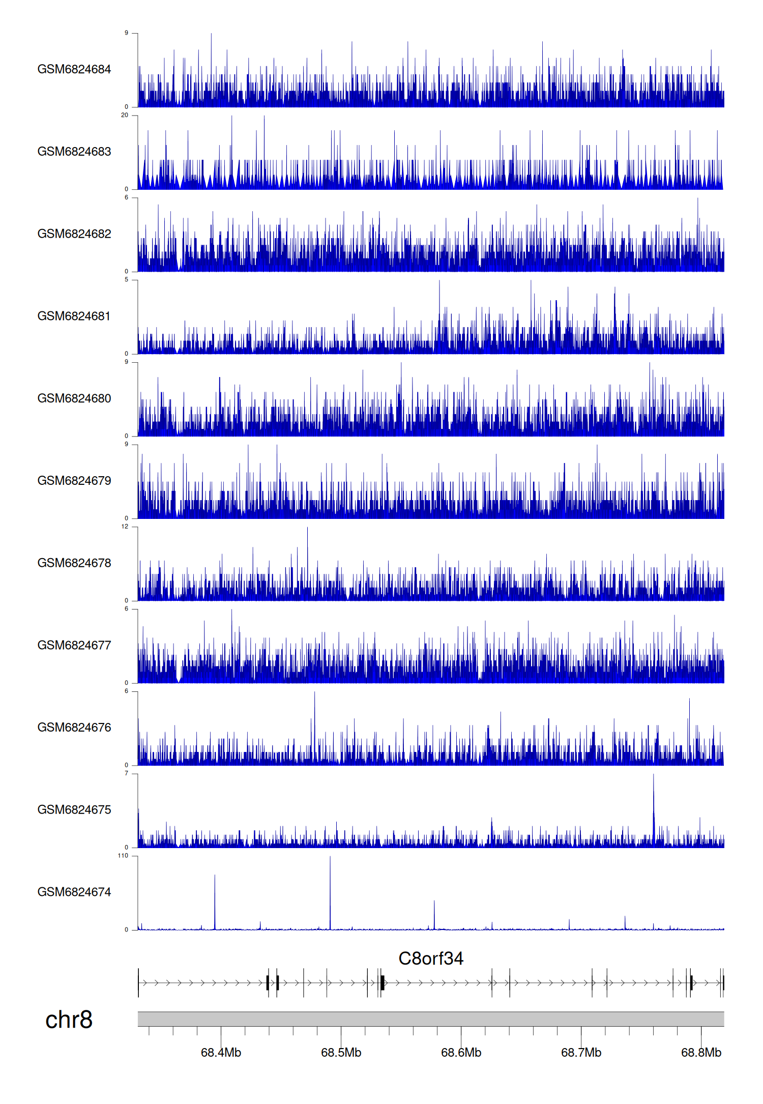 > Dataset: GSE221688 - C8orf34 peak across samples