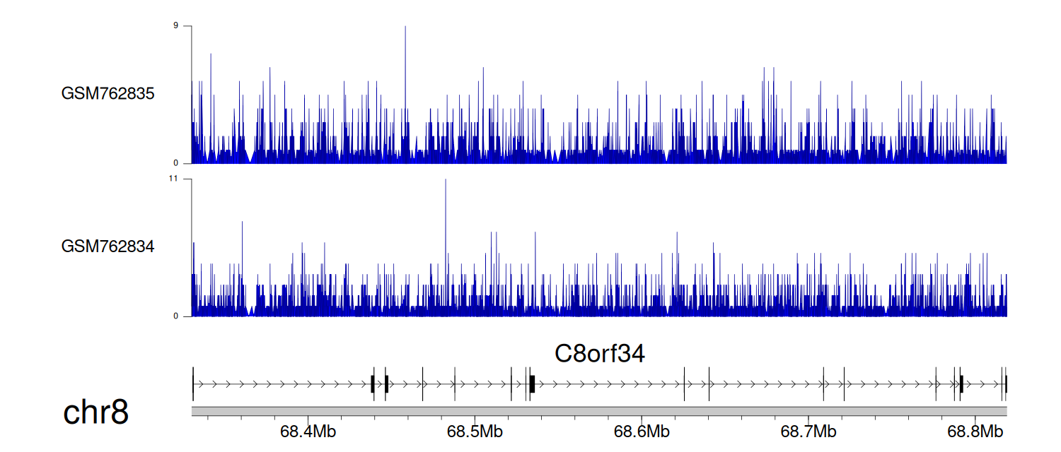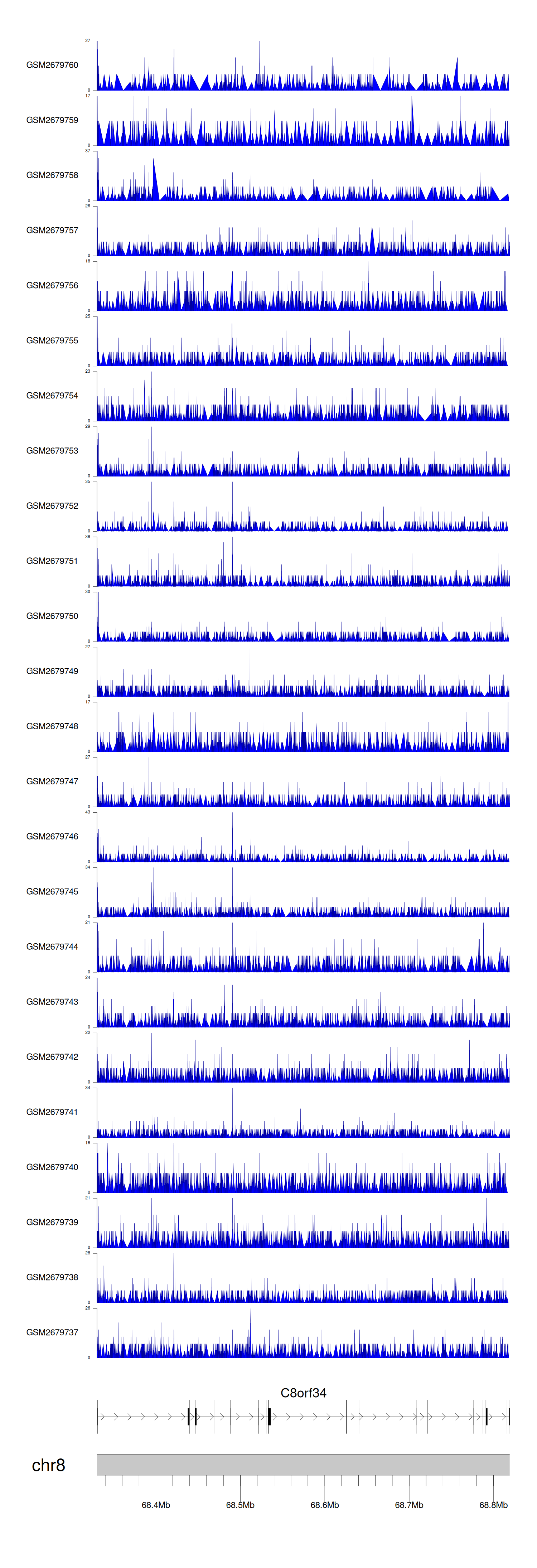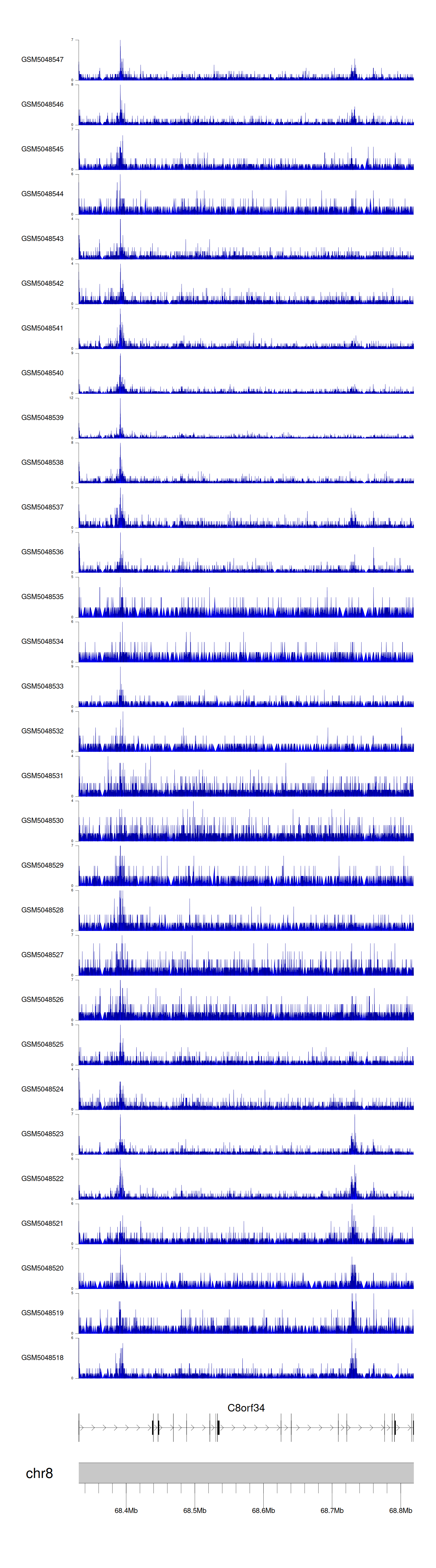 > Dataset: GSE165703 - C8orf34 peak across samples