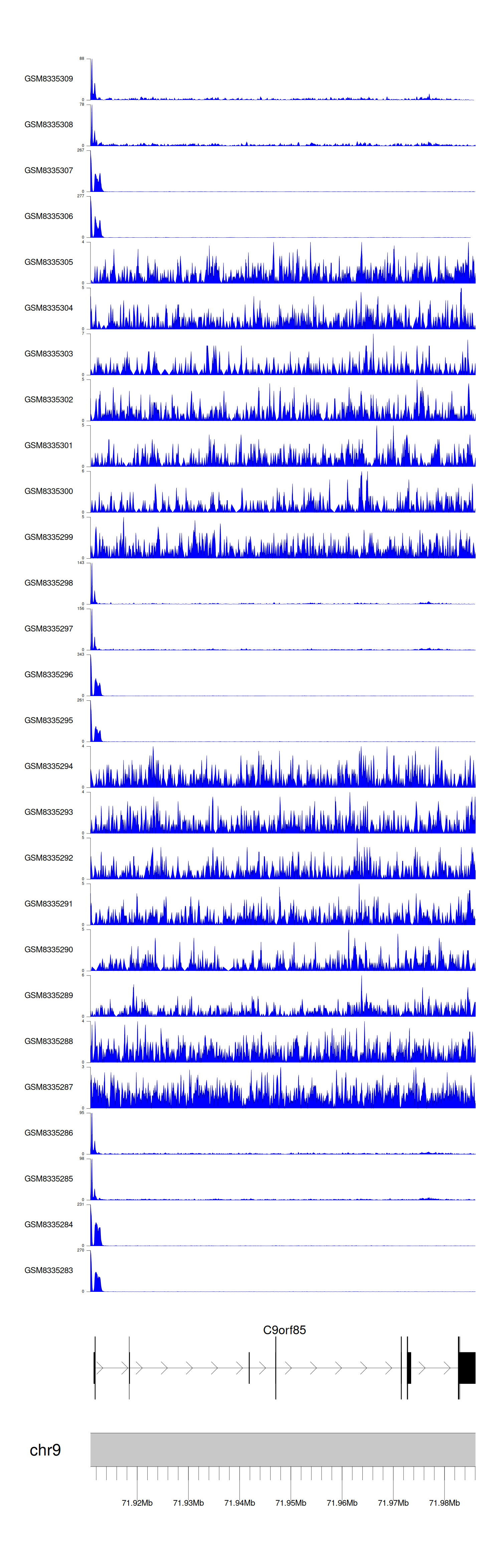 > Dataset: GSE270130 - C9orf85 peak across samples