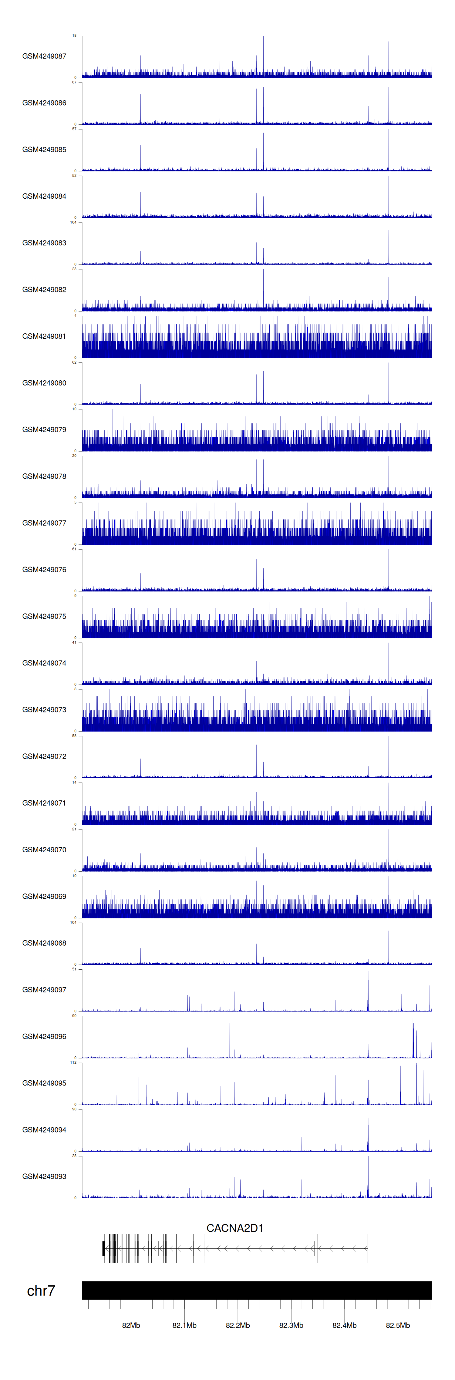 > Dataset: GSE143026 - CACNA2D1 peak across samples