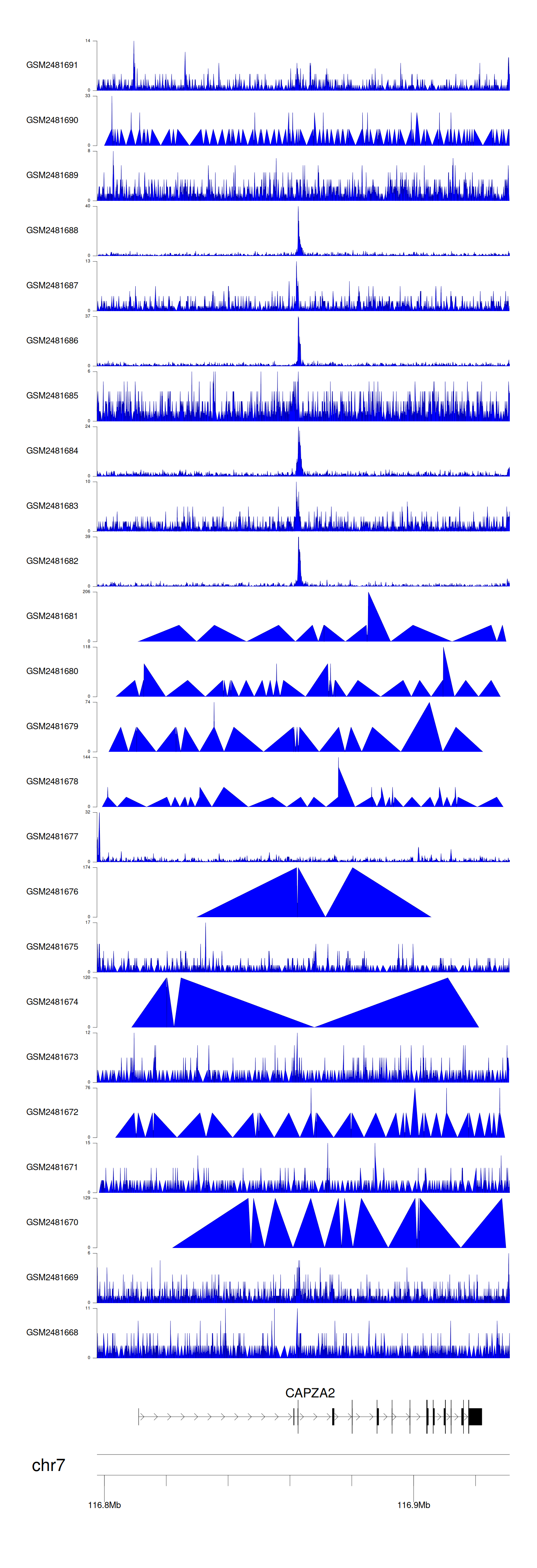 > Dataset: GSE94732 - CAPZA2 peak across samples