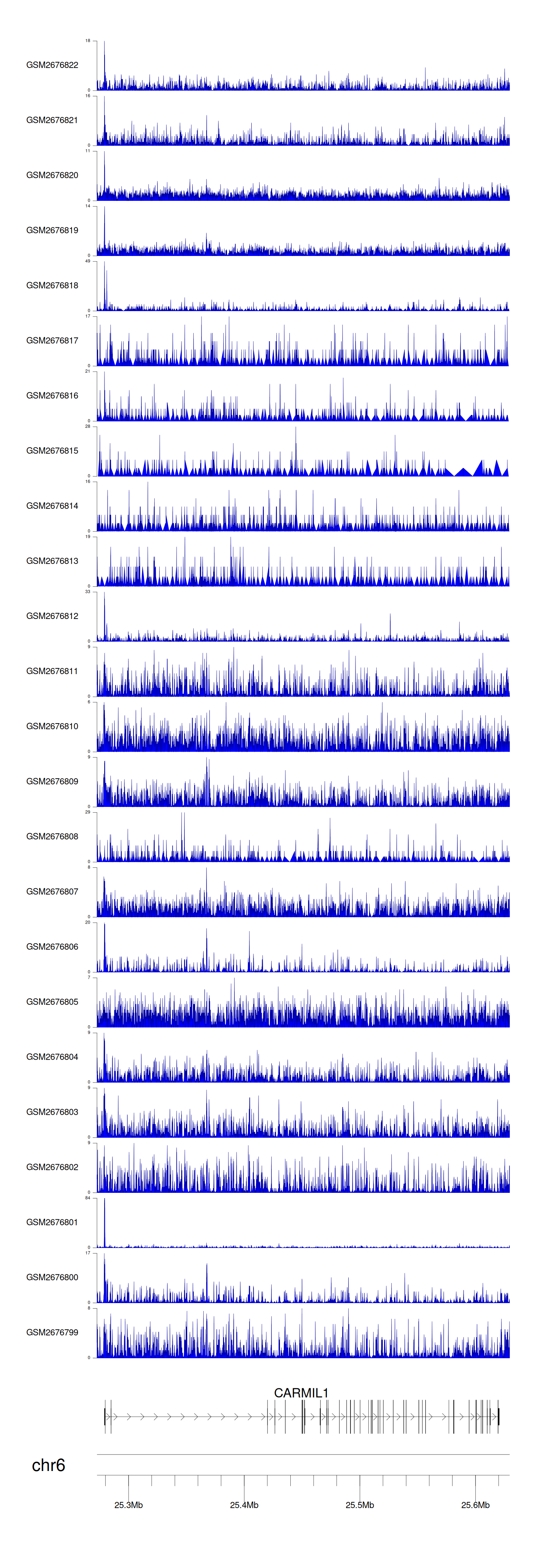 > Dataset: GSE100376 - CARMIL1 peak across samples
