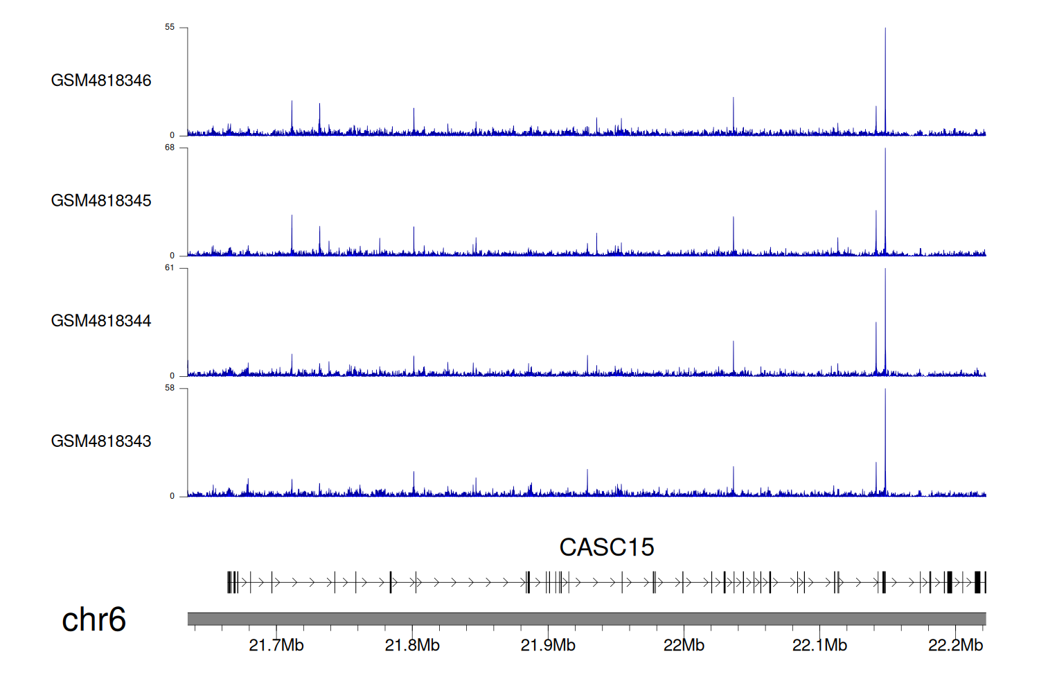 > Dataset: GSE131257 - CASC15 peak across samples
