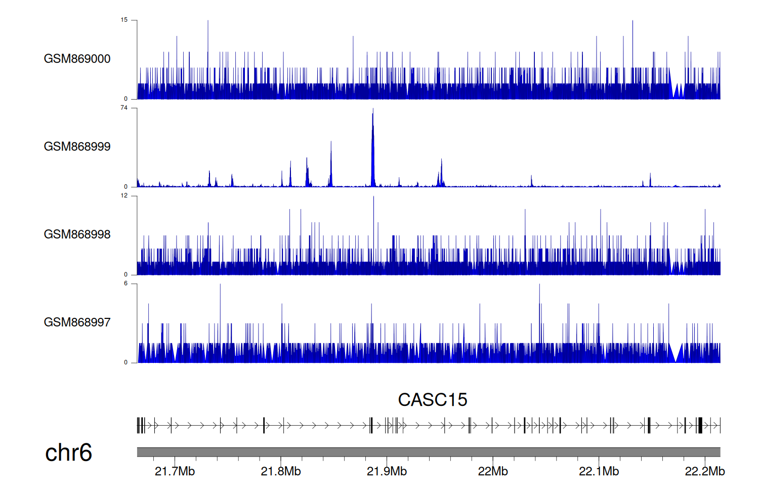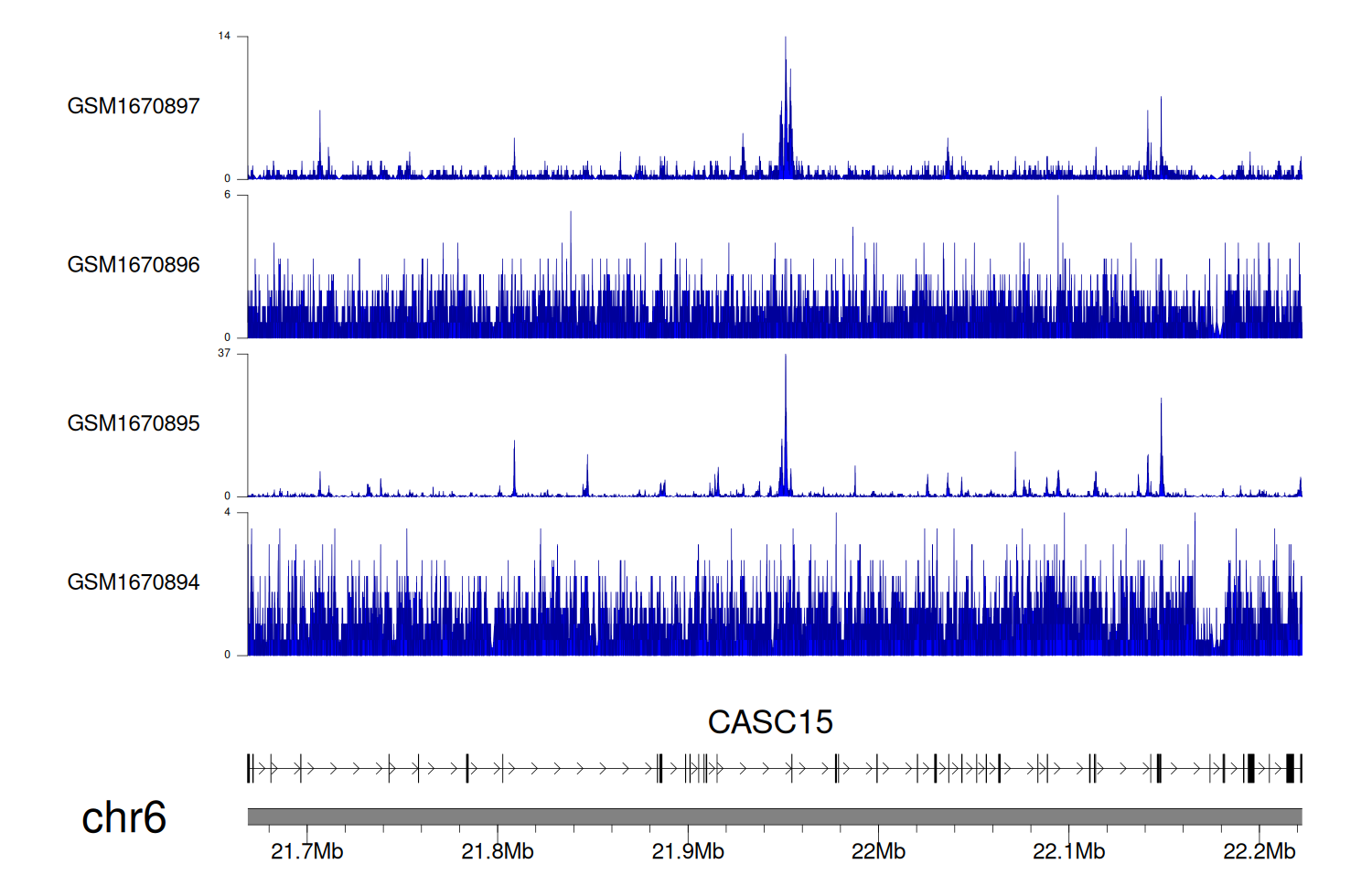 > Dataset: GSE68402 - CASC15 peak across samples