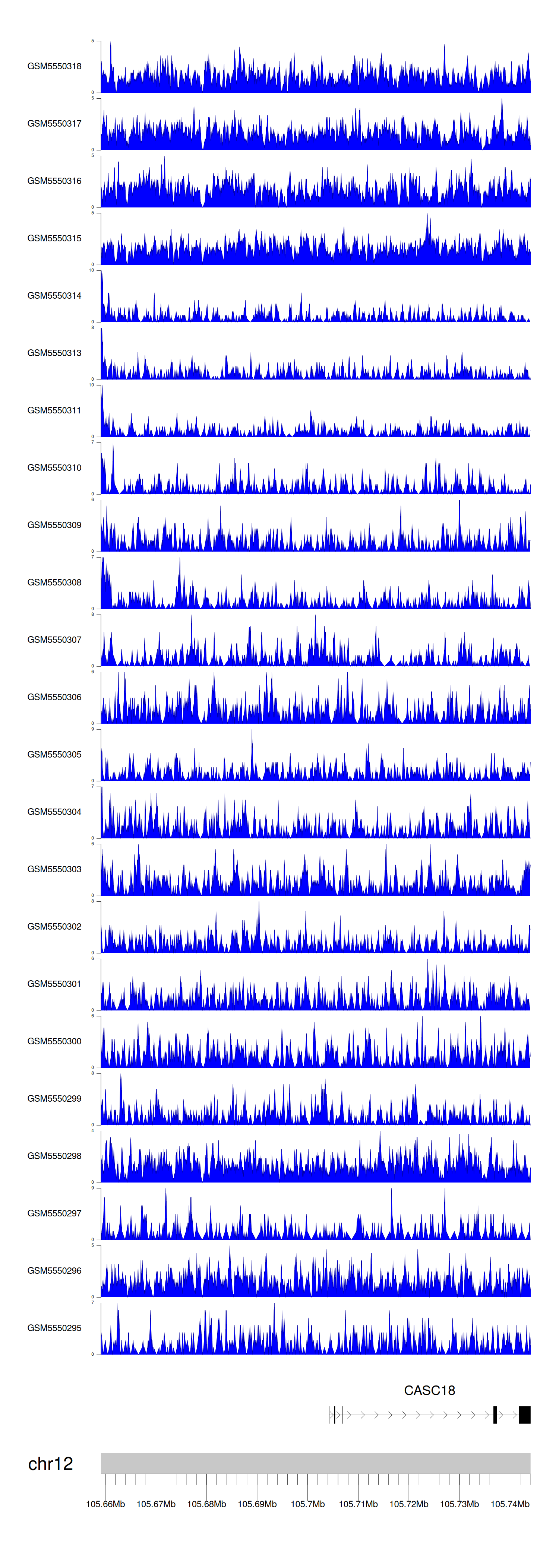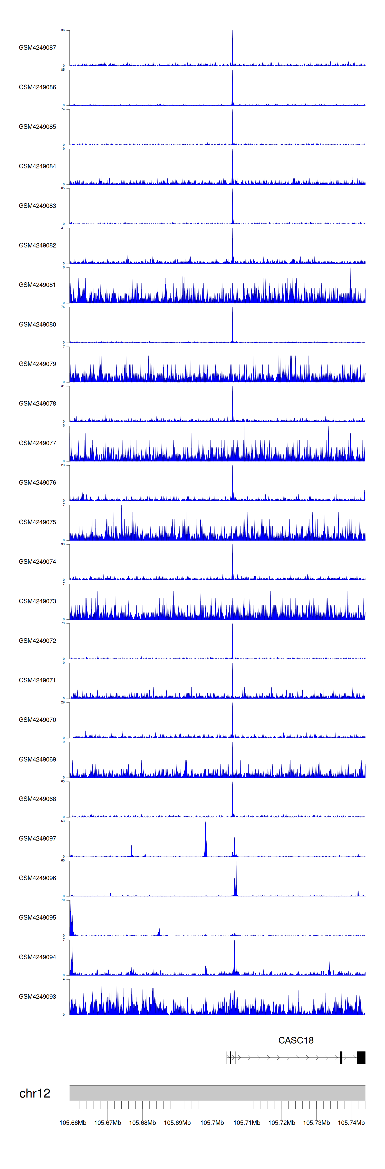 > Dataset: GSE143026 - CASC18 peak across samples
