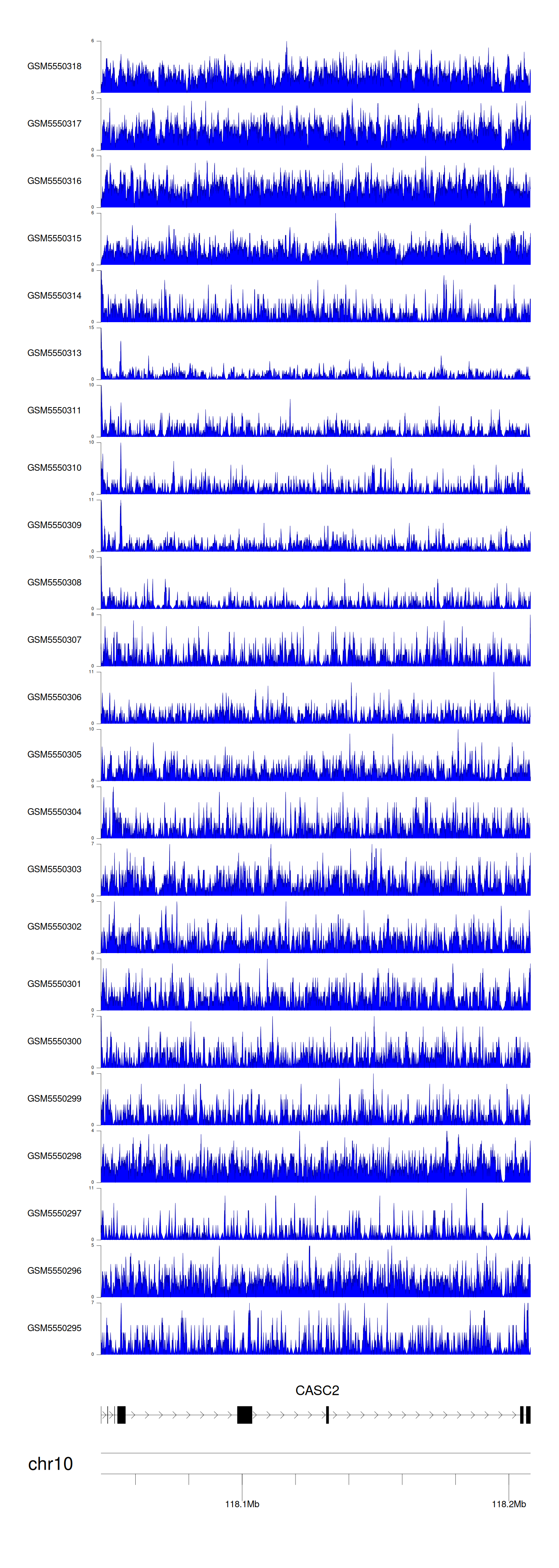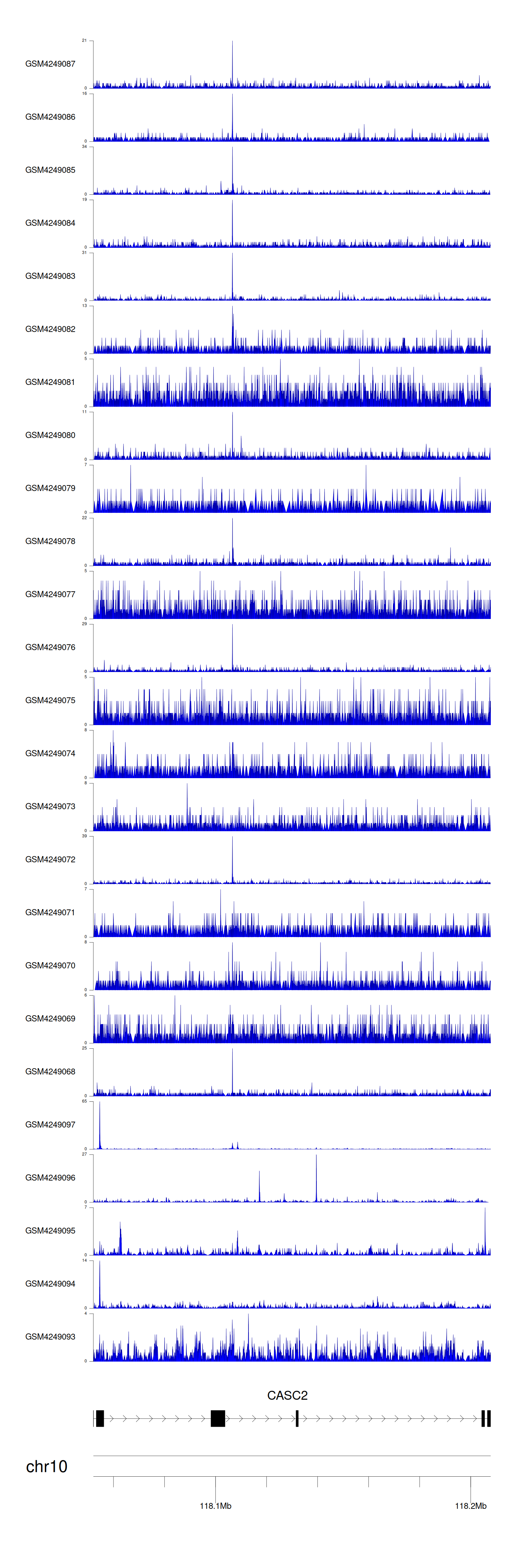 > Dataset: GSE183048 - CASC2 peak across samples
