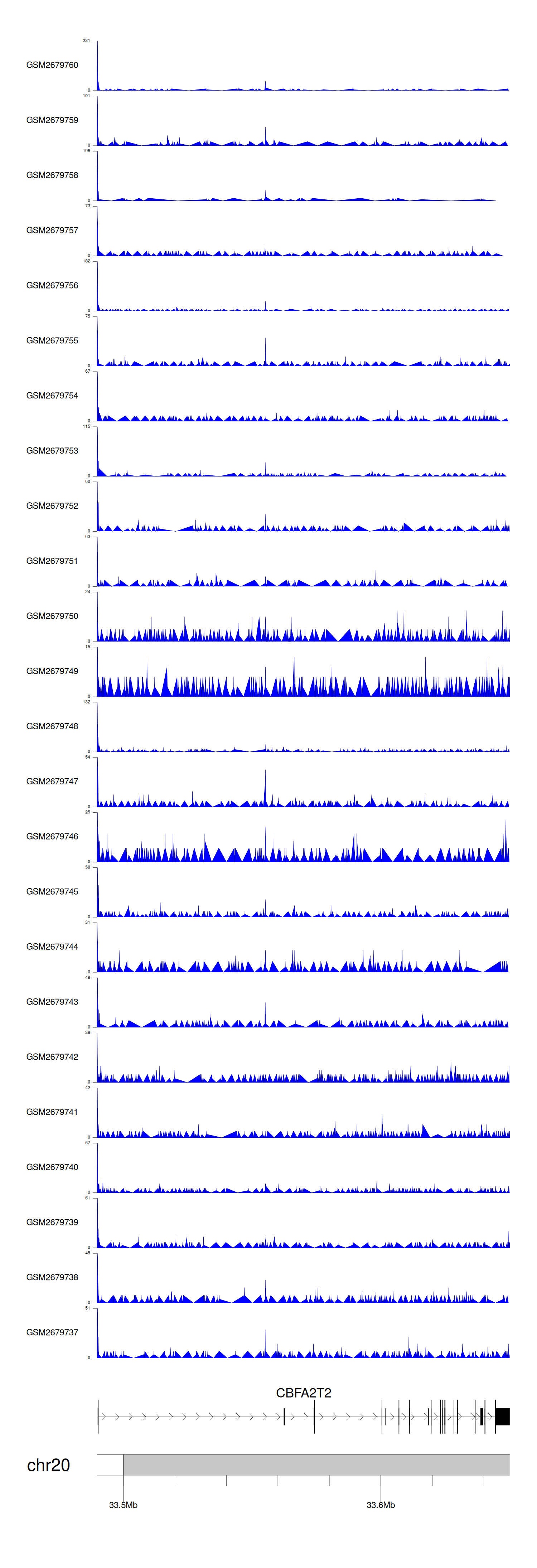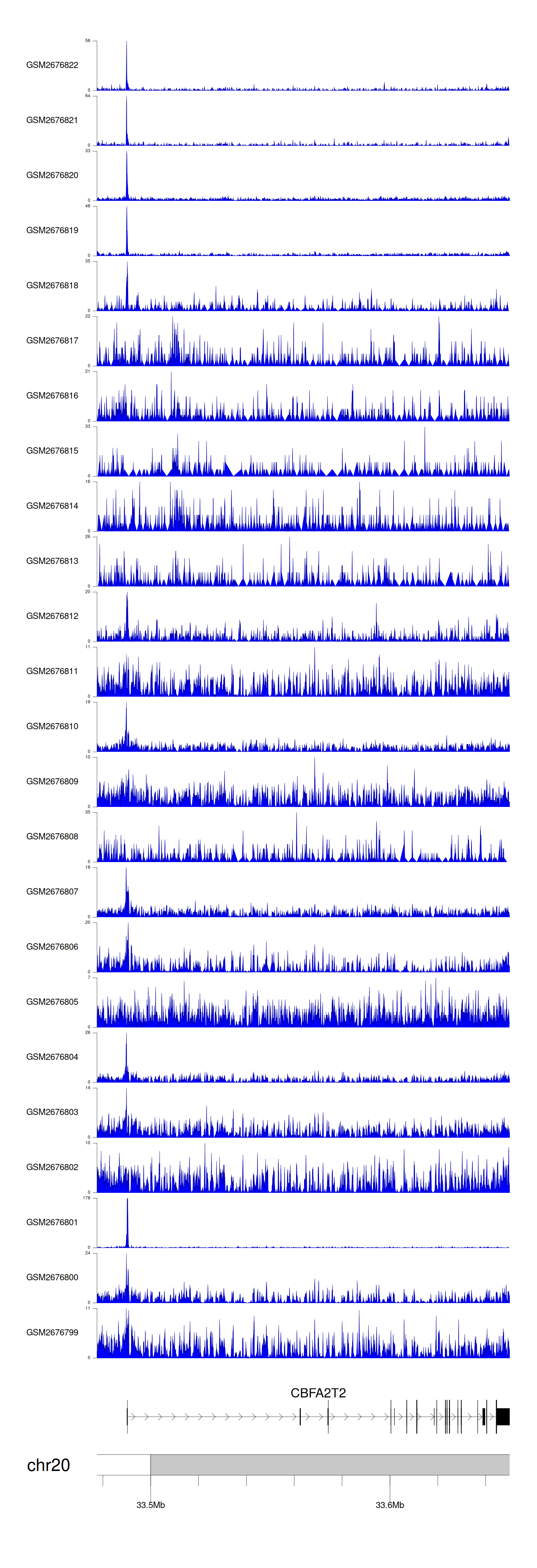 > Dataset: GSE30738 - CBFA2T2 peak across samples