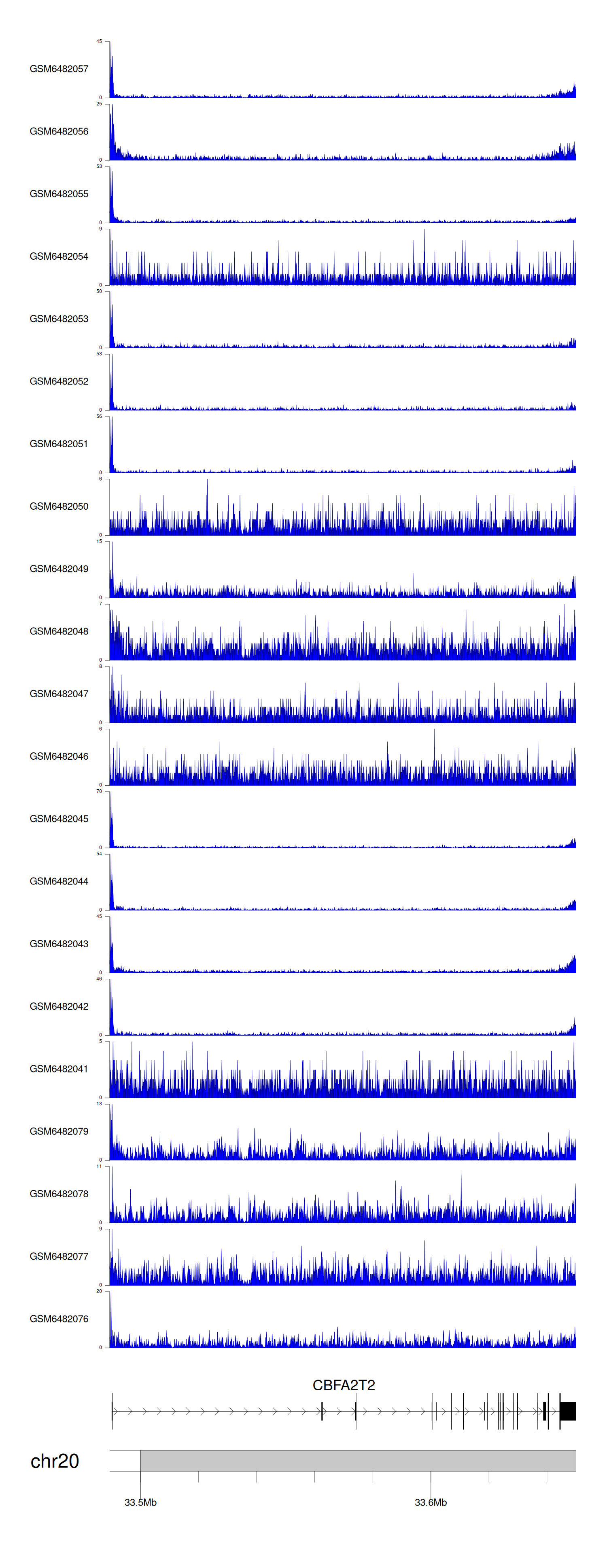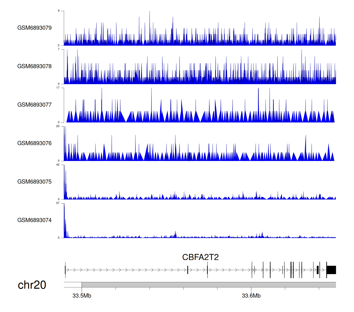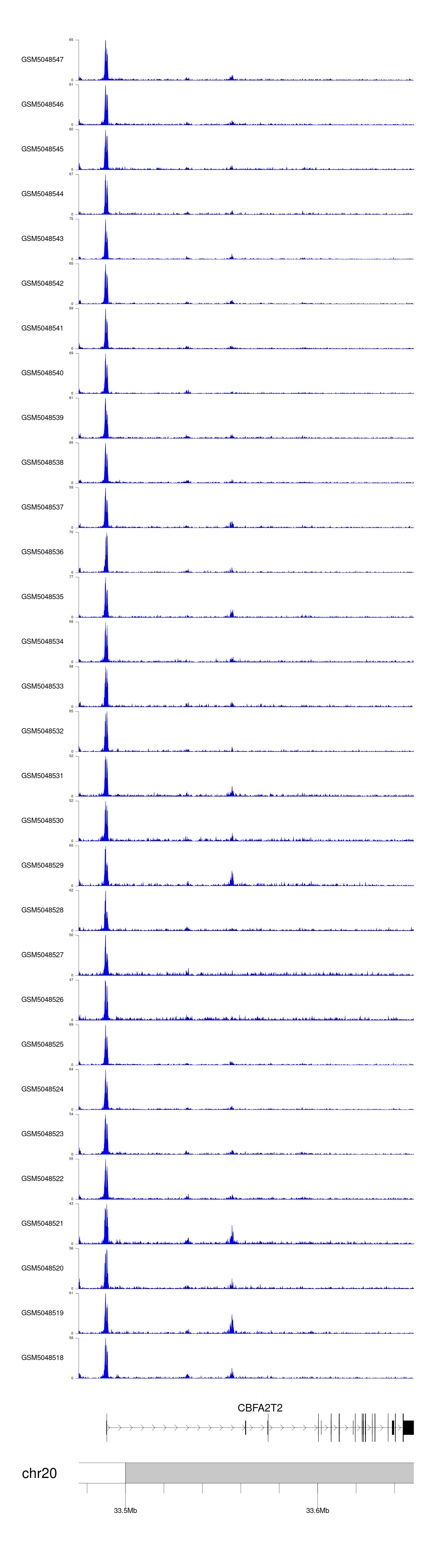 > Dataset: GSE165705 - CBFA2T2 peak across samples