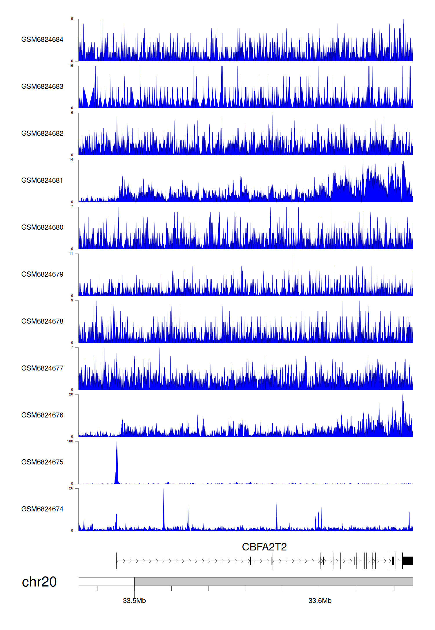 > Dataset: GSE144329 - CBFA2T2 peak across samples