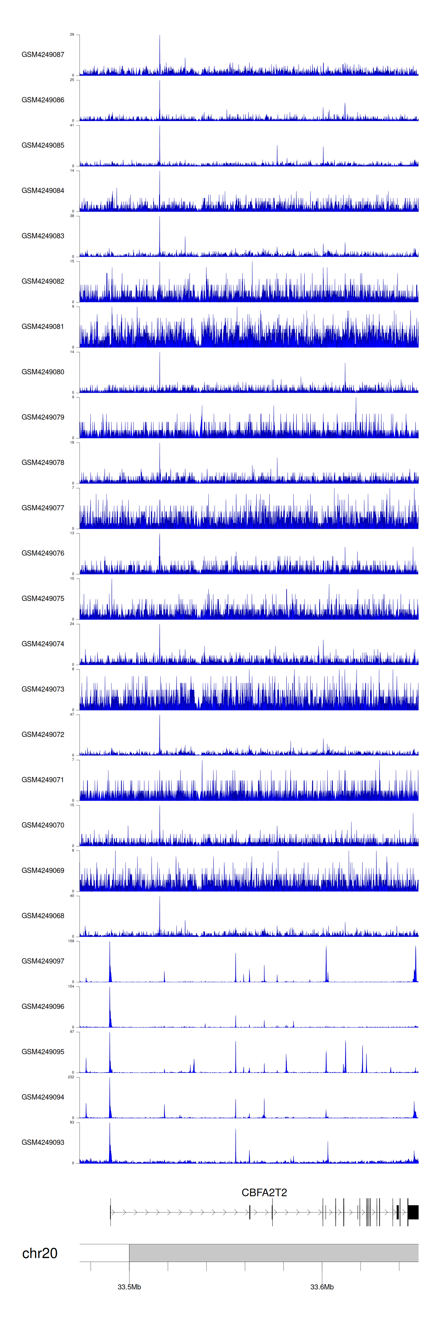 > Dataset: GSE143026 - CBFA2T2 peak across samples
