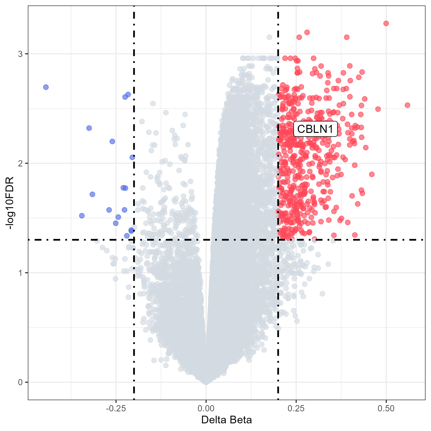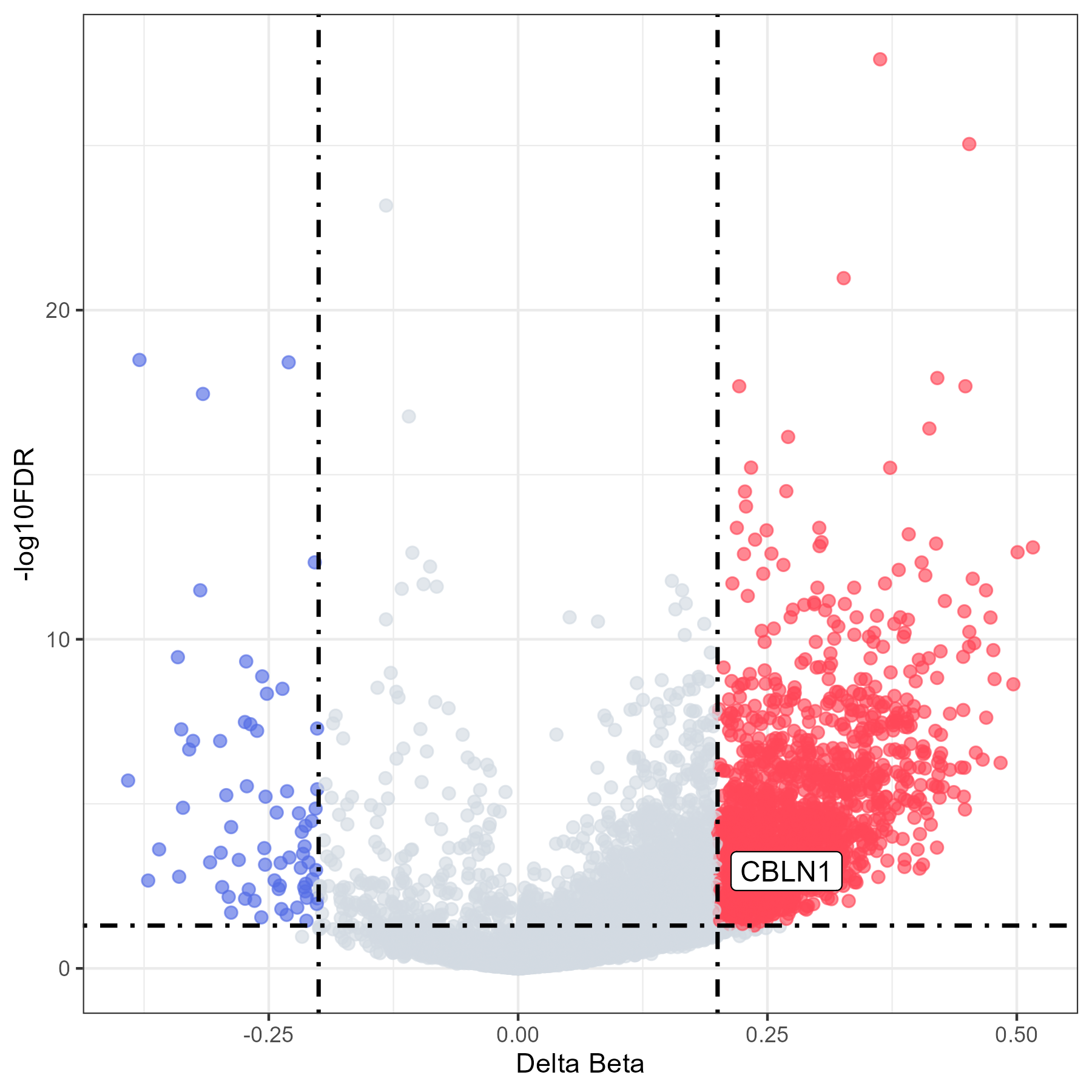 Volcano Plot (delta beta value > 0.2 & FDR < 0.05)