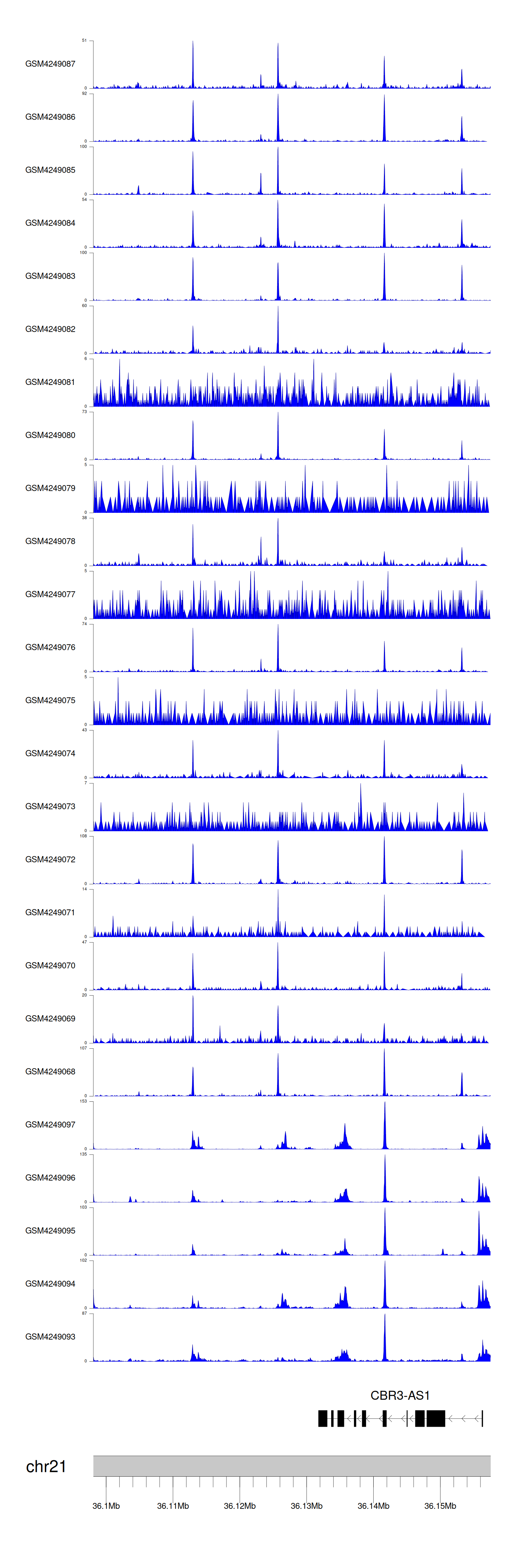 > Dataset: GSE143026 - CBR3-AS1 peak across samples