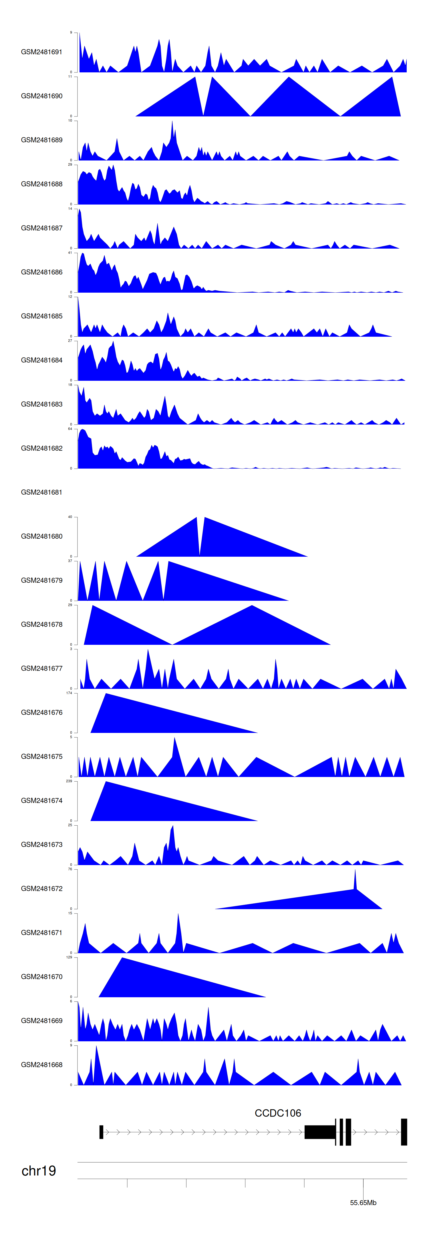 > Dataset: GSE94732 - CCDC106 peak across samples