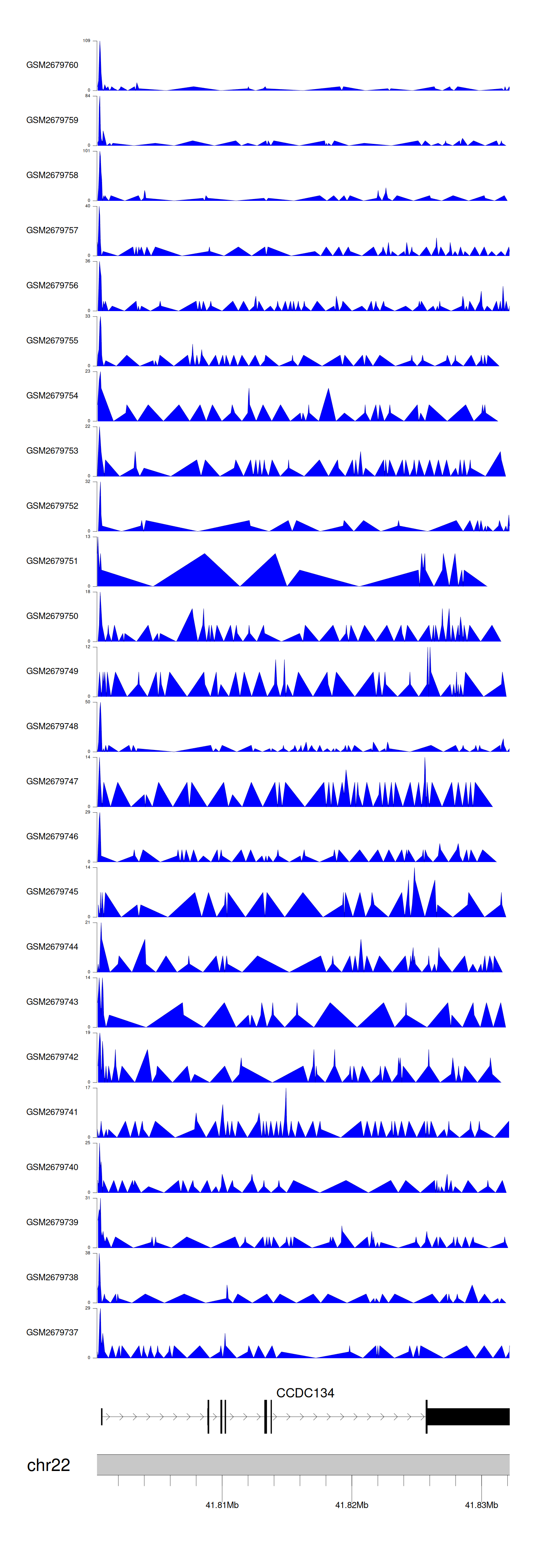 > Dataset: GSE100266 - CCDC134 peak across samples
