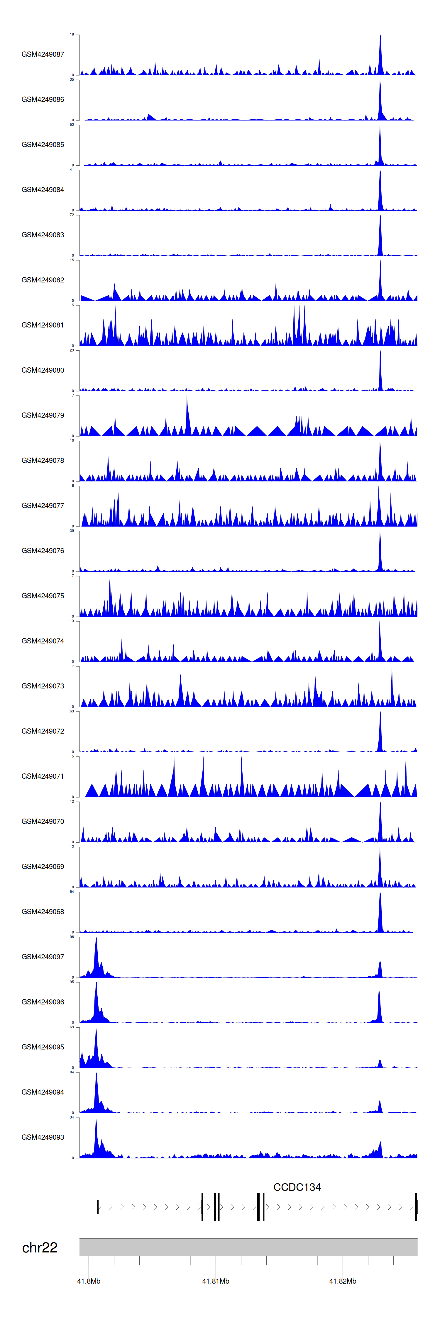 > Dataset: GSE143026 - CCDC134 peak across samples