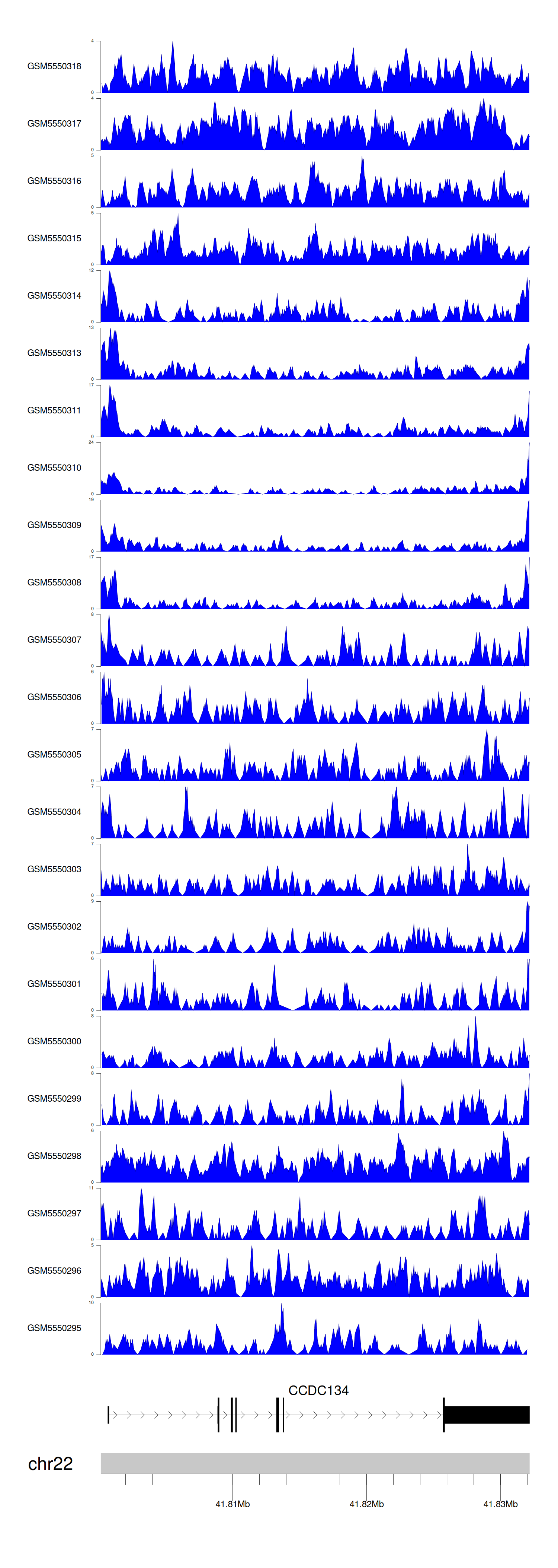 > Dataset: GSE183048 - CCDC134 peak across samples