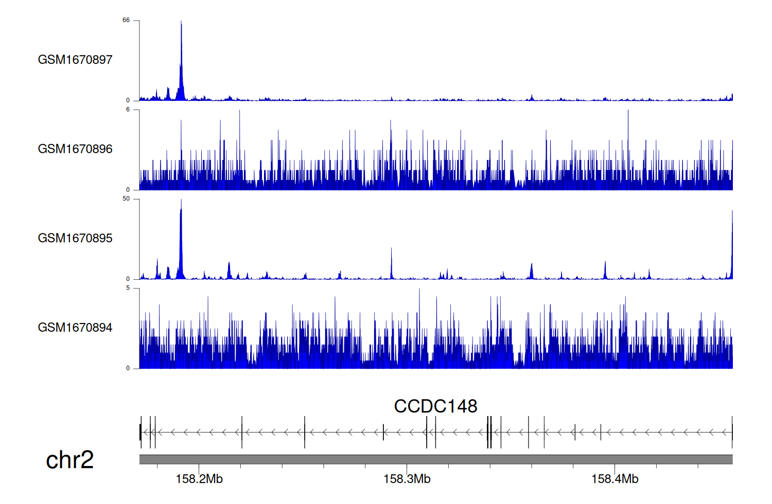> Dataset: GSE68402 - CCDC148 peak across samples