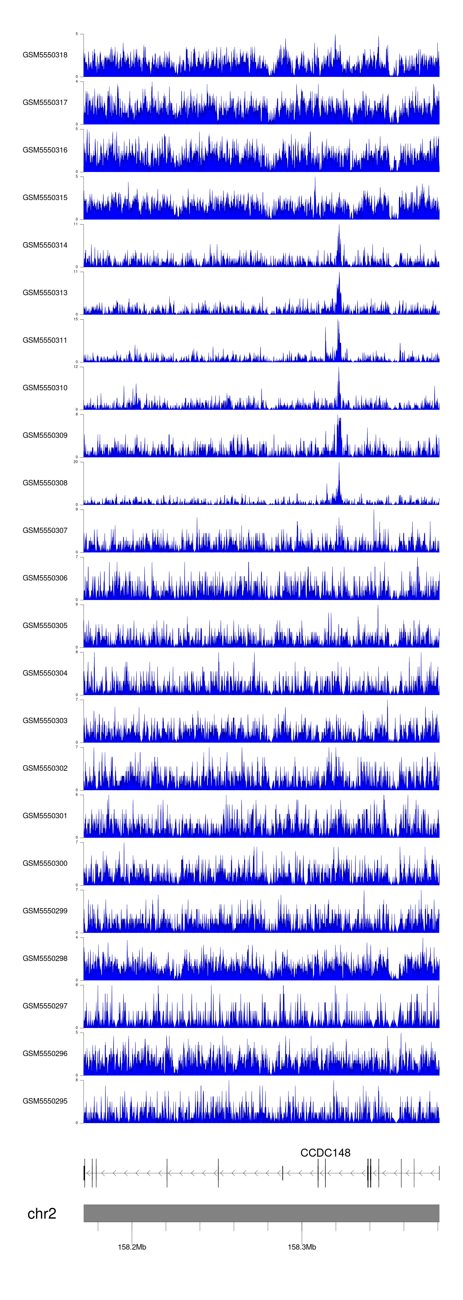 > Dataset: GSE143026 - CCDC148 peak across samples