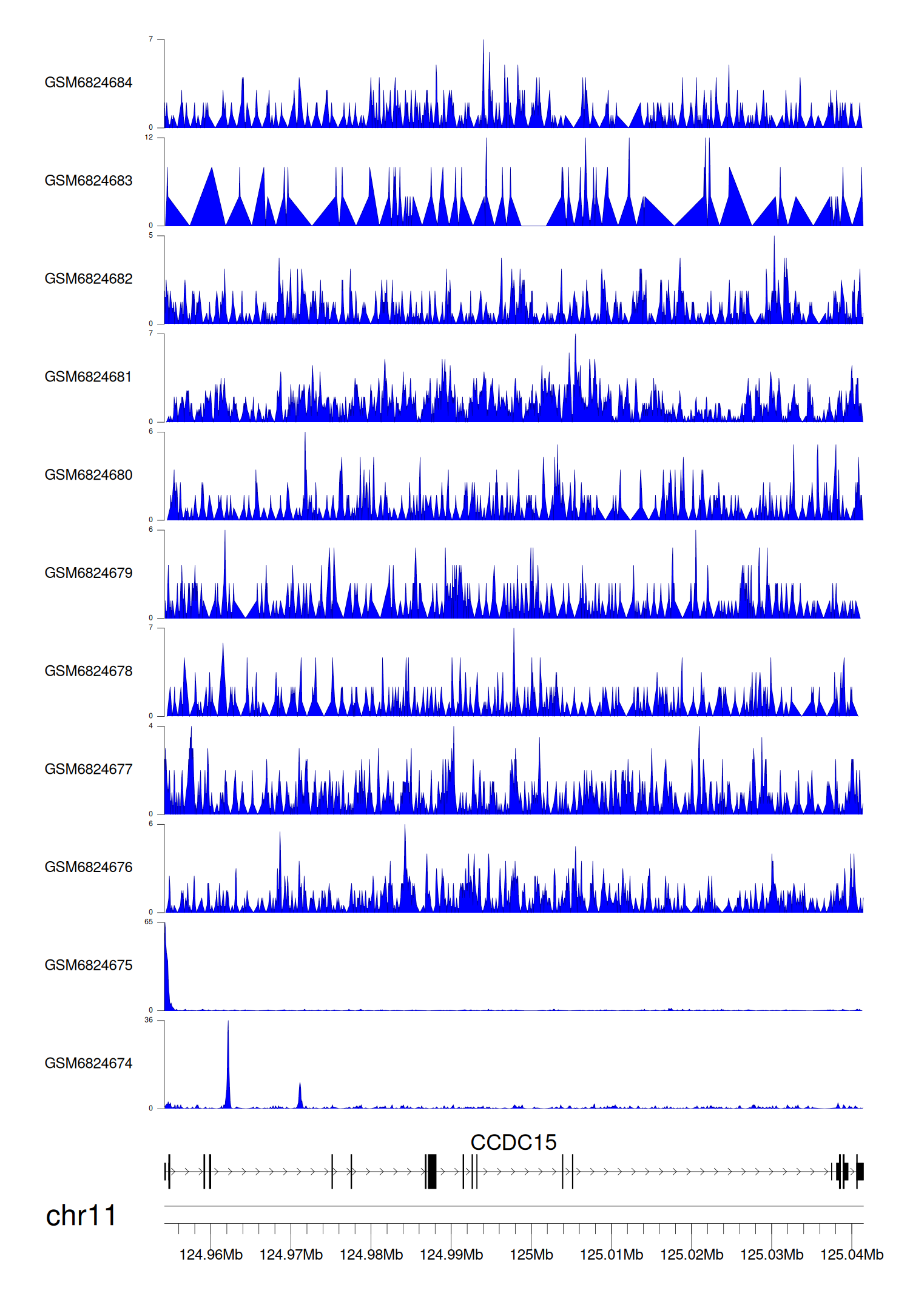 > Dataset: GSE165703 - CCDC15 peak across samples