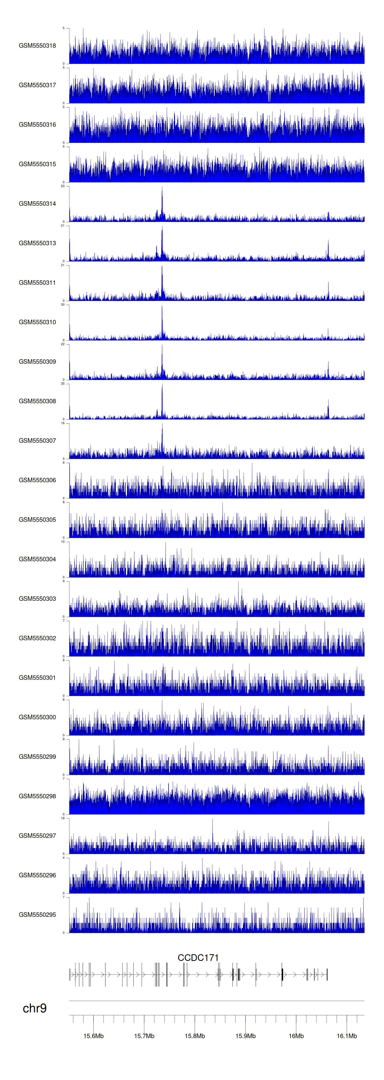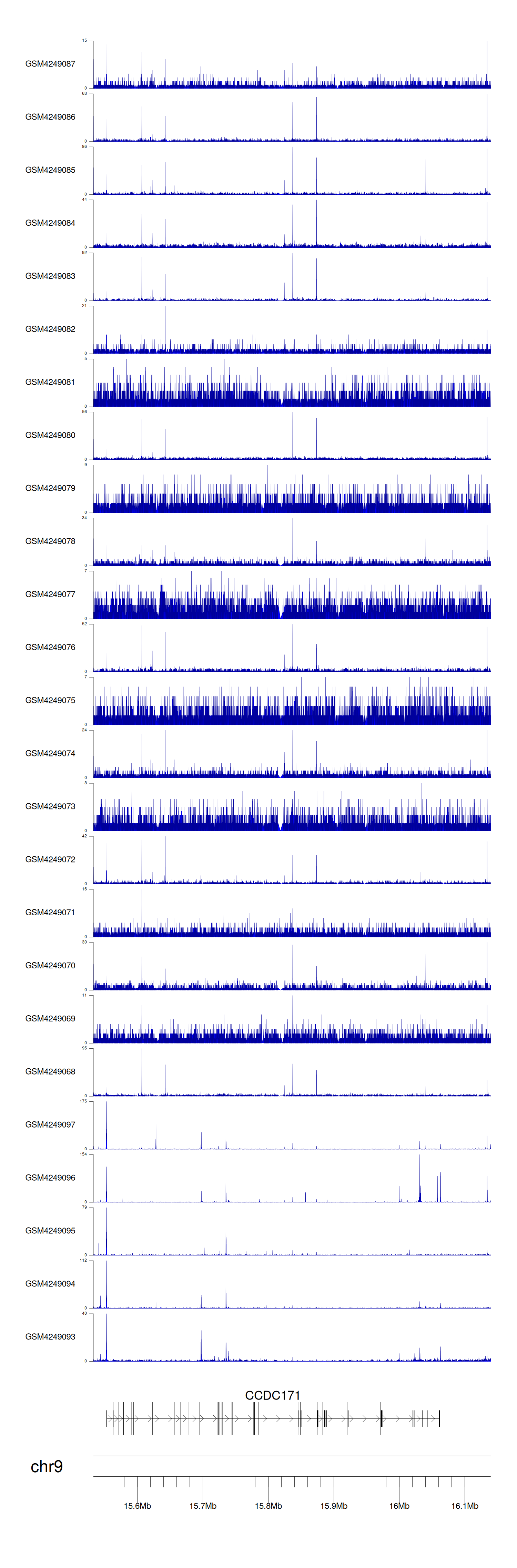 > Dataset: GSE143026 - CCDC171 peak across samples