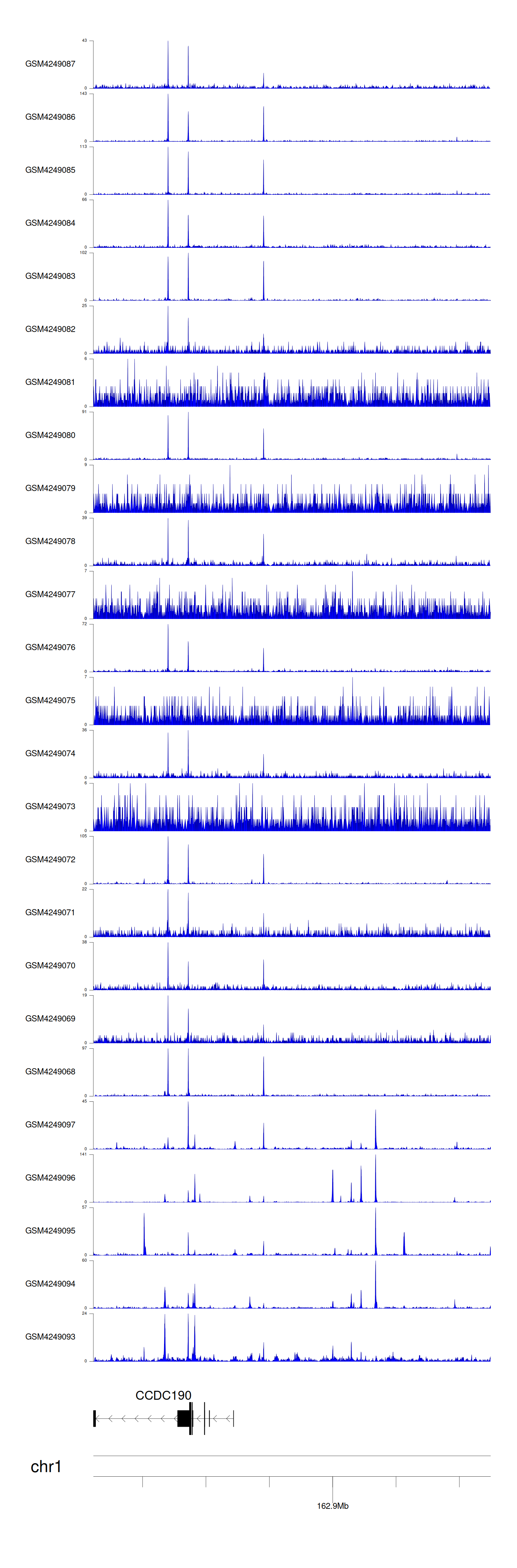 > Dataset: GSE143026 - CCDC190 peak across samples