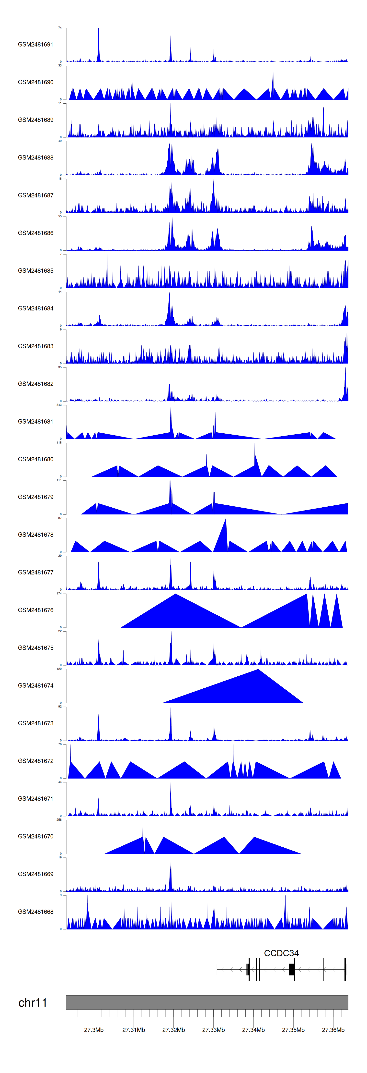 > Dataset: GSE94732 - CCDC34 peak across samples