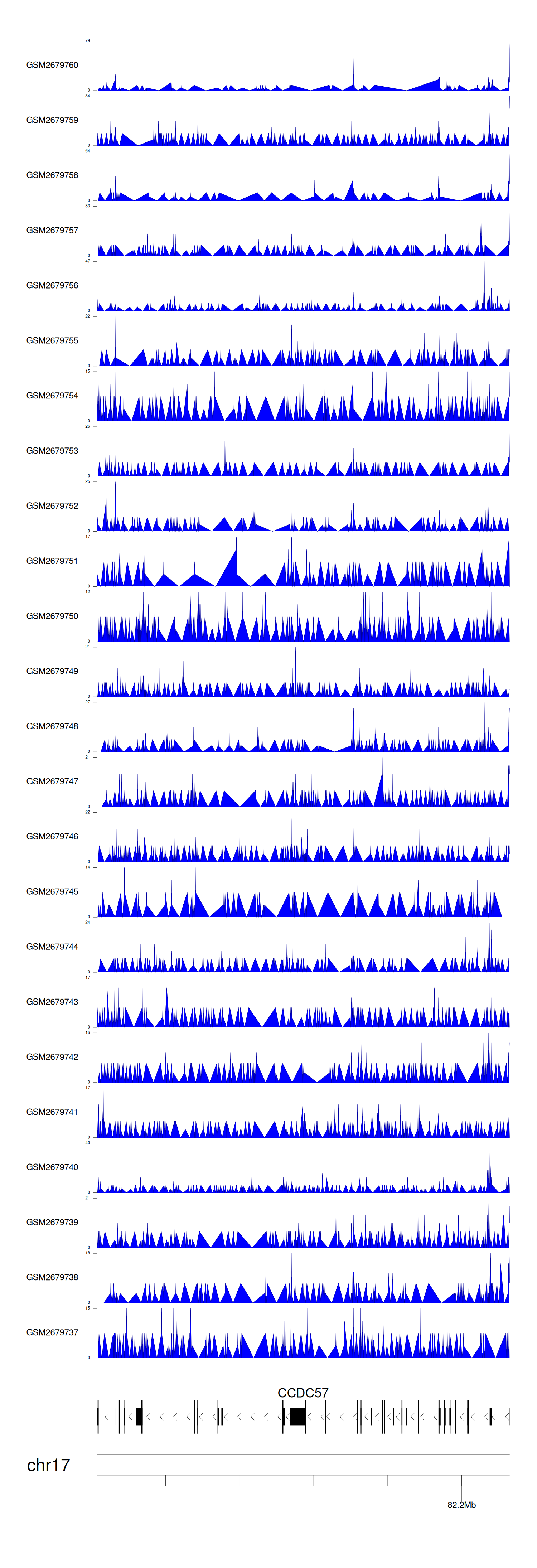 > Dataset: GSE30738 - CCDC57 peak across samples