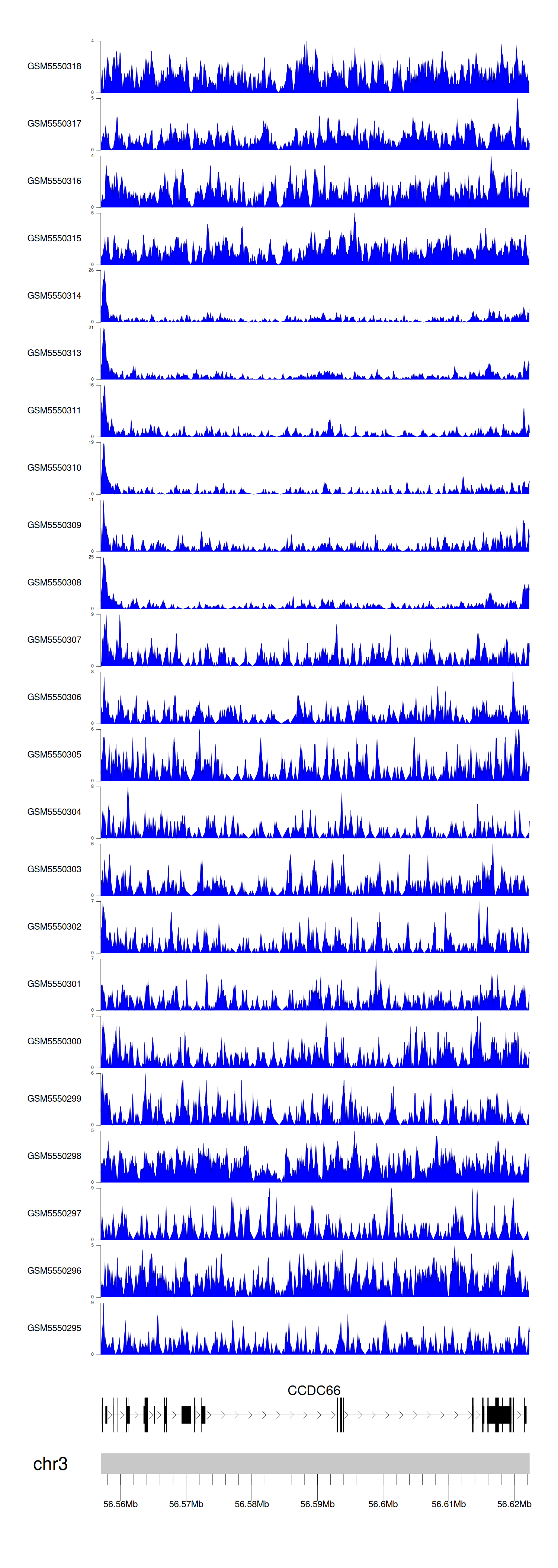 > Dataset: GSE143026 - CCDC66 peak across samples