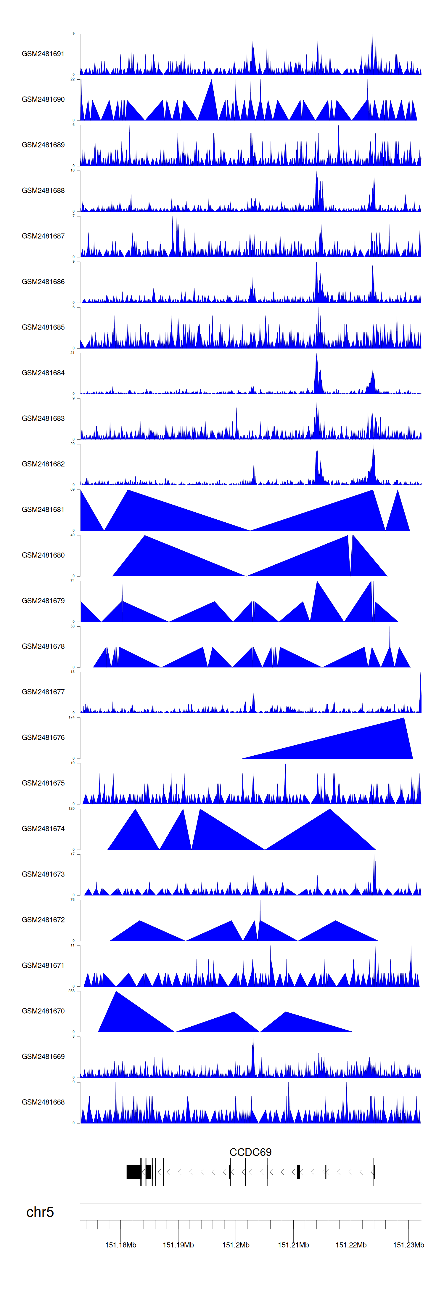 > Dataset: GSE94732 - CCDC69 peak across samples
